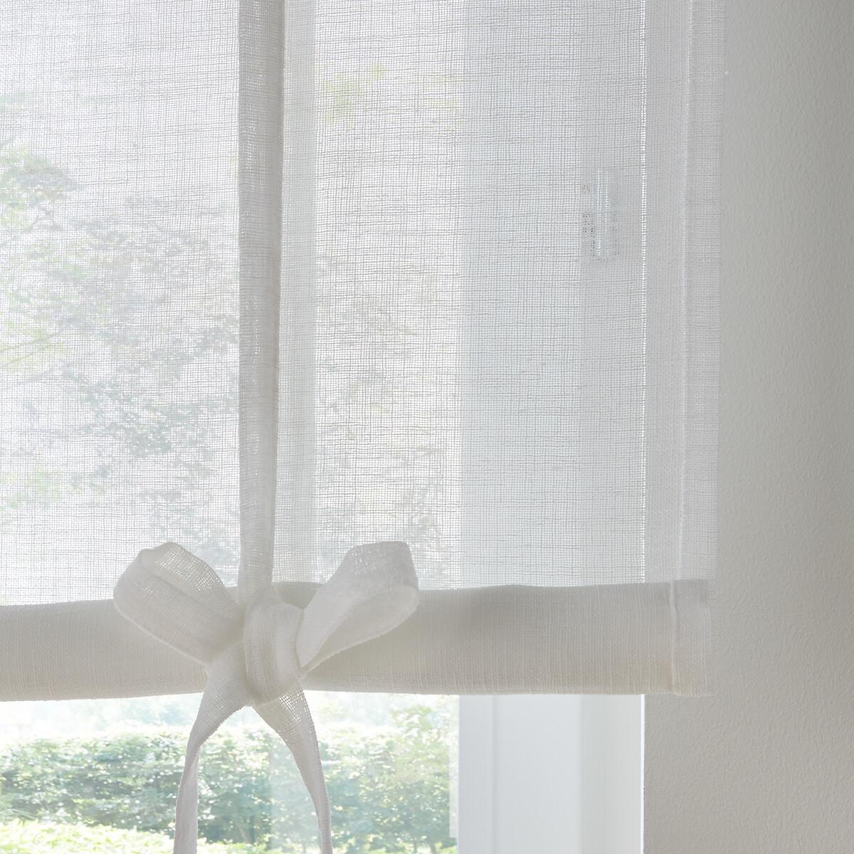 Nyong roller blind with ties: ideal for a bedroom, living room or office. It filters light while protecting from prying eyes. The Nyong blind is perfect for a chic, contemporary look. Simply roll up the stockings by hand and tie the knots at the desired height. Product Details • 100% polyester • Light, diaphanous weave for softly filtered light • Straight hem • To adjust the blind to the desired height : Roll up the bottom of the blind by hand and tie the roll using the ties • The blind has a 5cm sleeve at the top, so it can be fitted to a rod or a rail. Care Advice • Machine washable Dimensions • 130 x H60cm • 130 x H80cm • 130 x H100cm • OEKO-TEX® Standard 100. Standard 100 certification by OEKO-TEX® tests textile products for harmful substances via an independent, international label.