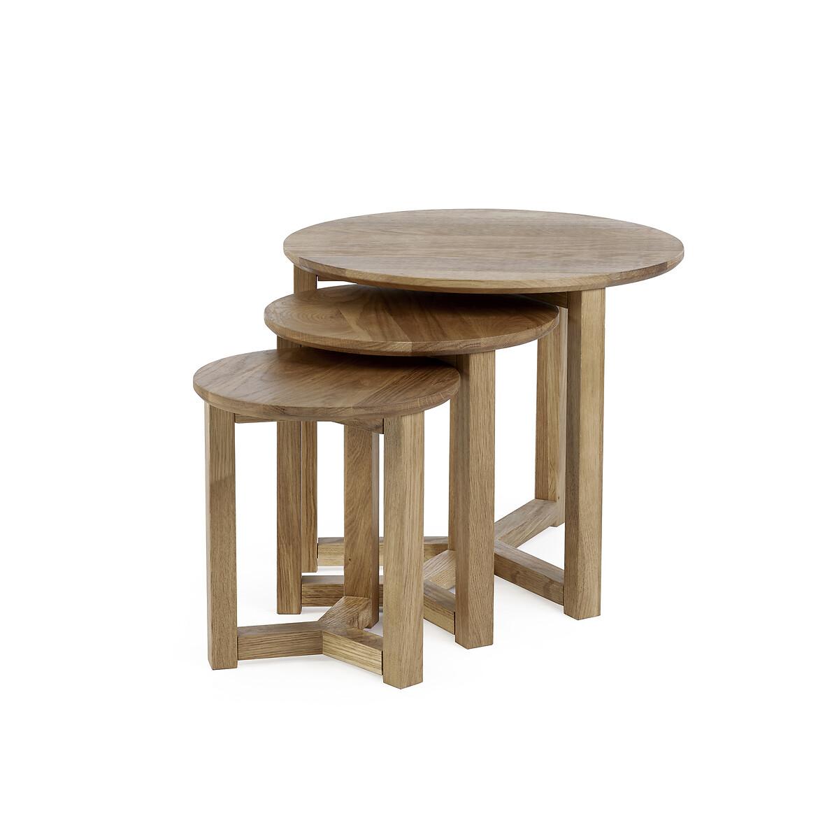 Elevate your living space with the Nyra Nest of Tables, a perfect blend of style and functionality. Crafted from beautiful solid oak, these tables add a touch of sophistication to any room while offering practicality for everyday use. The sleek Y-shaped base adds a modern flair to the design, enhancing its visual appeal. This set of three tables is versatile, allowing you to use them together or separately according to your needs. Whether you're entertaining guests or simply need extra surface space, they provide the ideal solution for your home. Product details• Set of 3• Solid oak• Full Assembly Required• 1 Year manufacturers warranty. Product Composition - 99% wood, 1% metal. Product Dimensions - 50 cm x 50 cm x 42 cm , Weight - 9.5 KGPackage Dimensions - 56 cm x 56 cm x 12 cm, Weight -10.5 KGThis product will be dispatched by one of our trusted suppliers. You’ll be contacted by their selected courier about your delivery. Please note: this product cannot be delivered to all Offshore Islands, Northern Ireland or Republic of Ireland. JULIA01