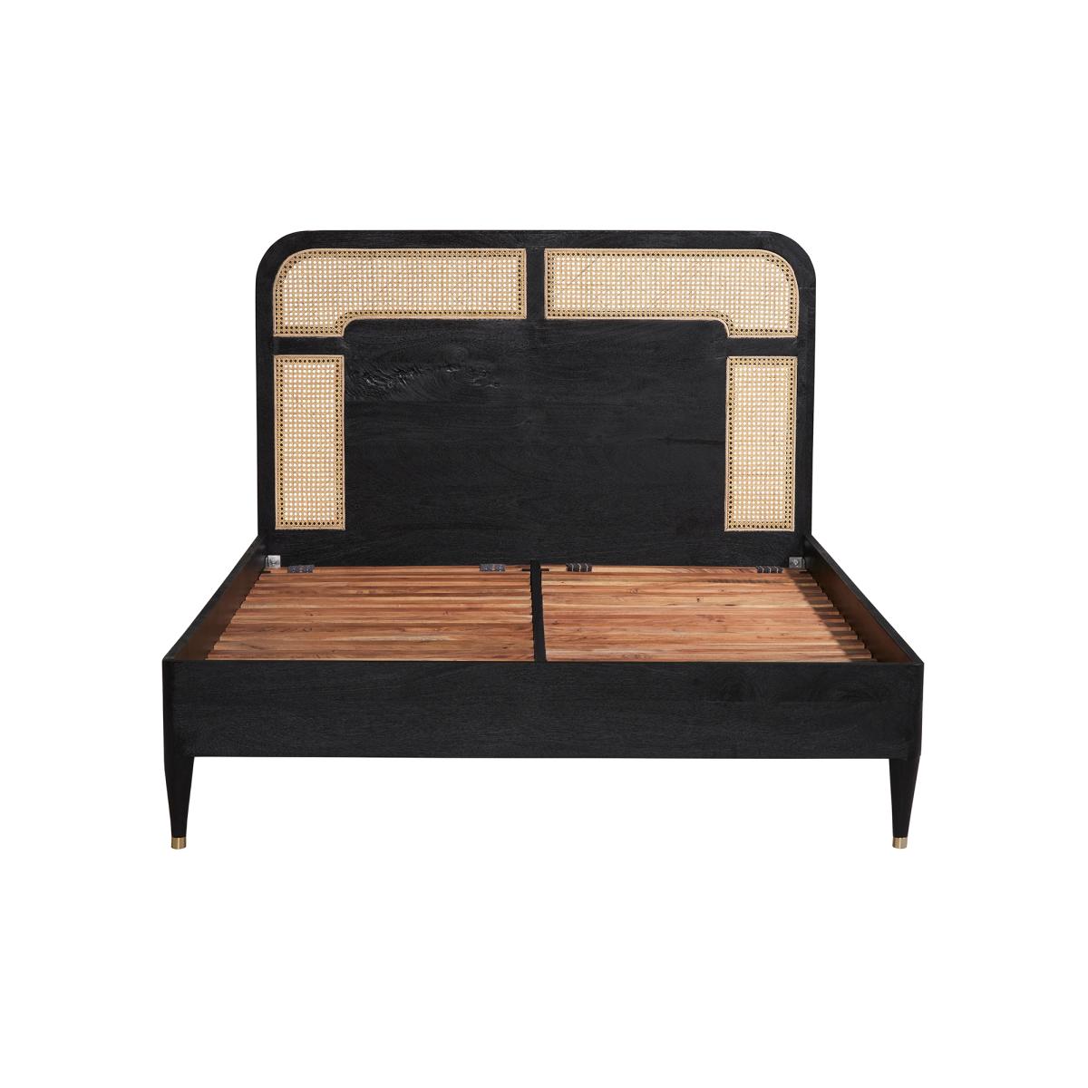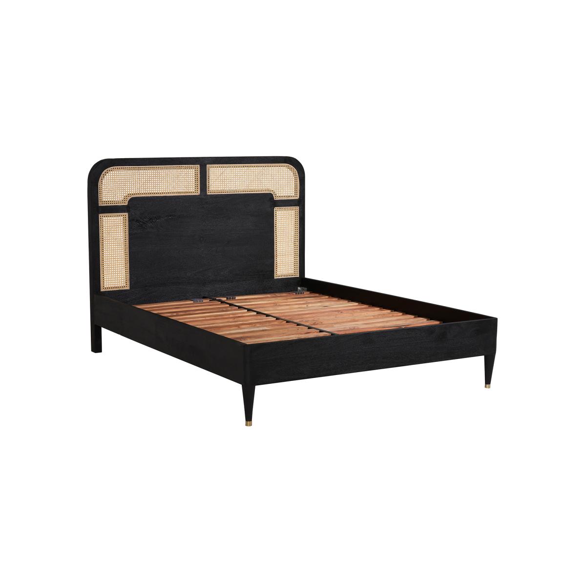 Modern with a traditional touch, the Nyx King Size Rattan Bed Frame has a beautiful contrast, slick black mango wood with effortlessly curved rattan detailing and brass caps on the feet for a contemporary finish, the Nyx King Bed frame has a Scandinavian vibe that will be a standout feature in your bedroom