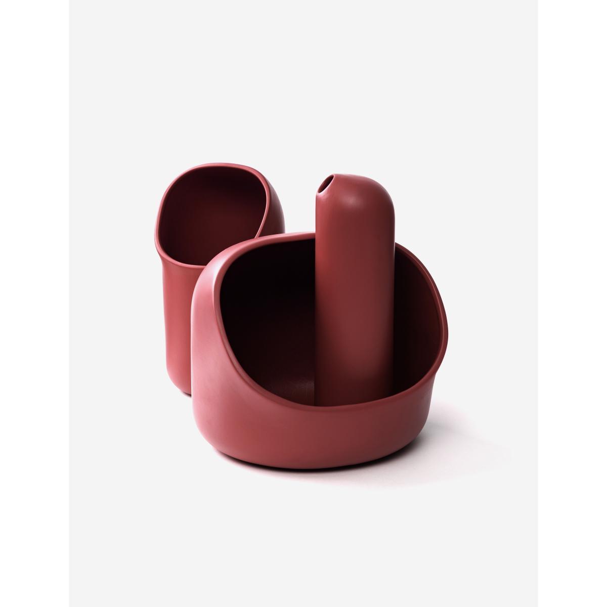 Ô is a family of accessories in glazed terracotta made up of a vase, a carafe and a basket. Like a trio of highly expressive characters, together they seem to sing, shout, chat. Stocky, small or plump, their morphology is very distinct but their generous, solid appearance is what unites them. Each piece is made by hand in Italy. Very elegant, this multifunctional Ô fruit basket (W 20 cm x D 25 cm x H 23 cm) can hold fruit in the kitchen, a plant in the living room or can be used as a trinket bowl in an entrance hall. Originally from Brittany, the young designer Ionna Vautrin is inspired for her creations by cowl vents that dot the decks of boats in port cities, an object she is familiar with and interprets with great sensitivity.