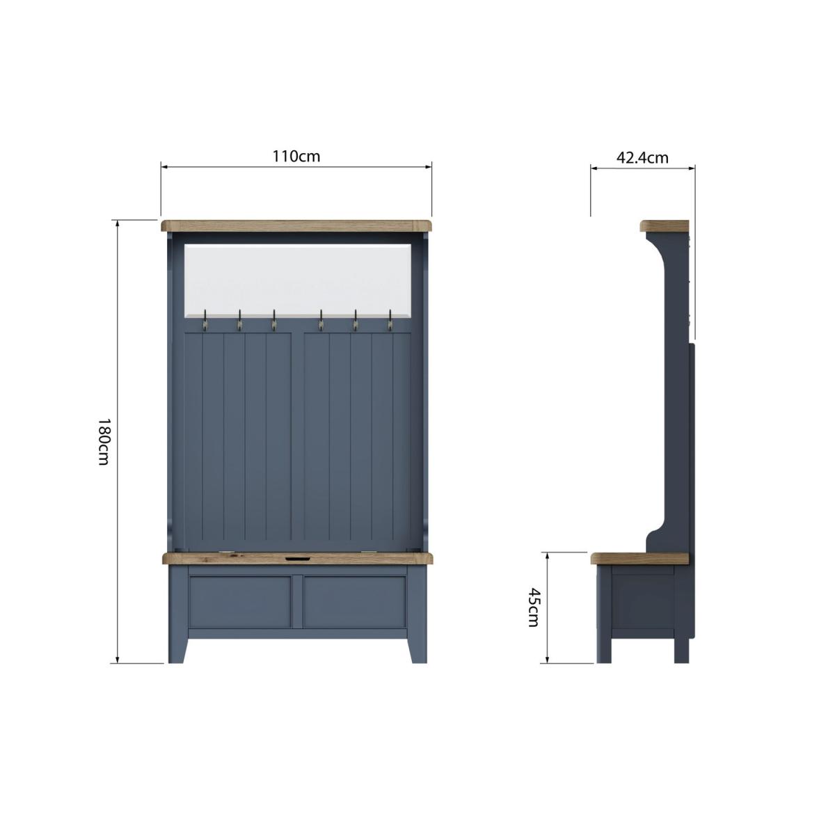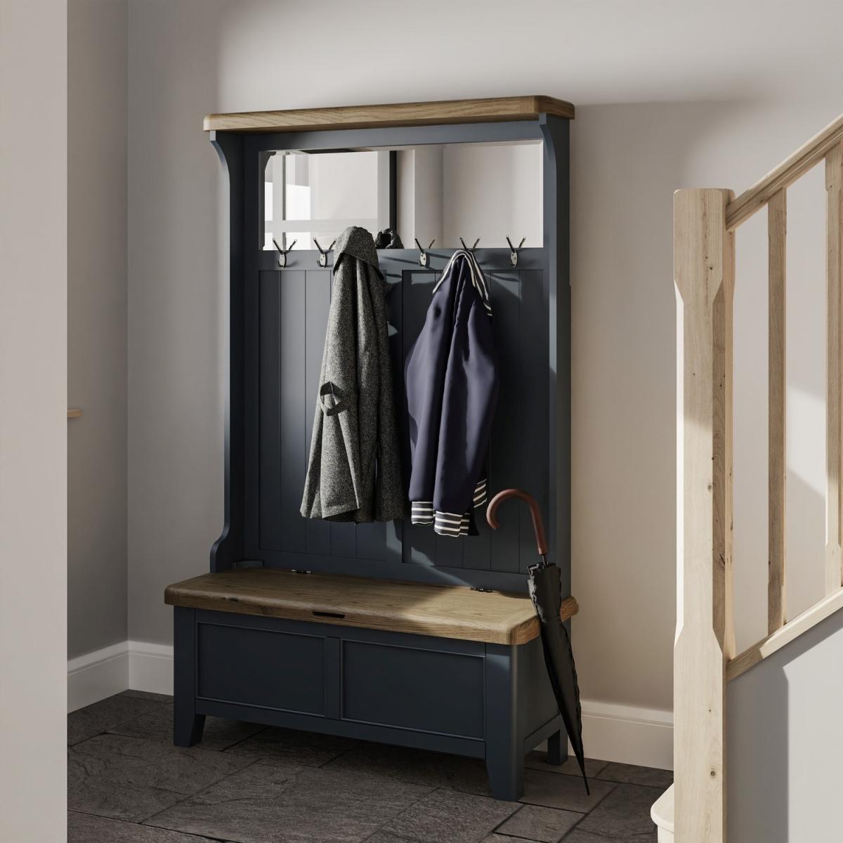 Oak & Blue Hall Bench Unit with Storage