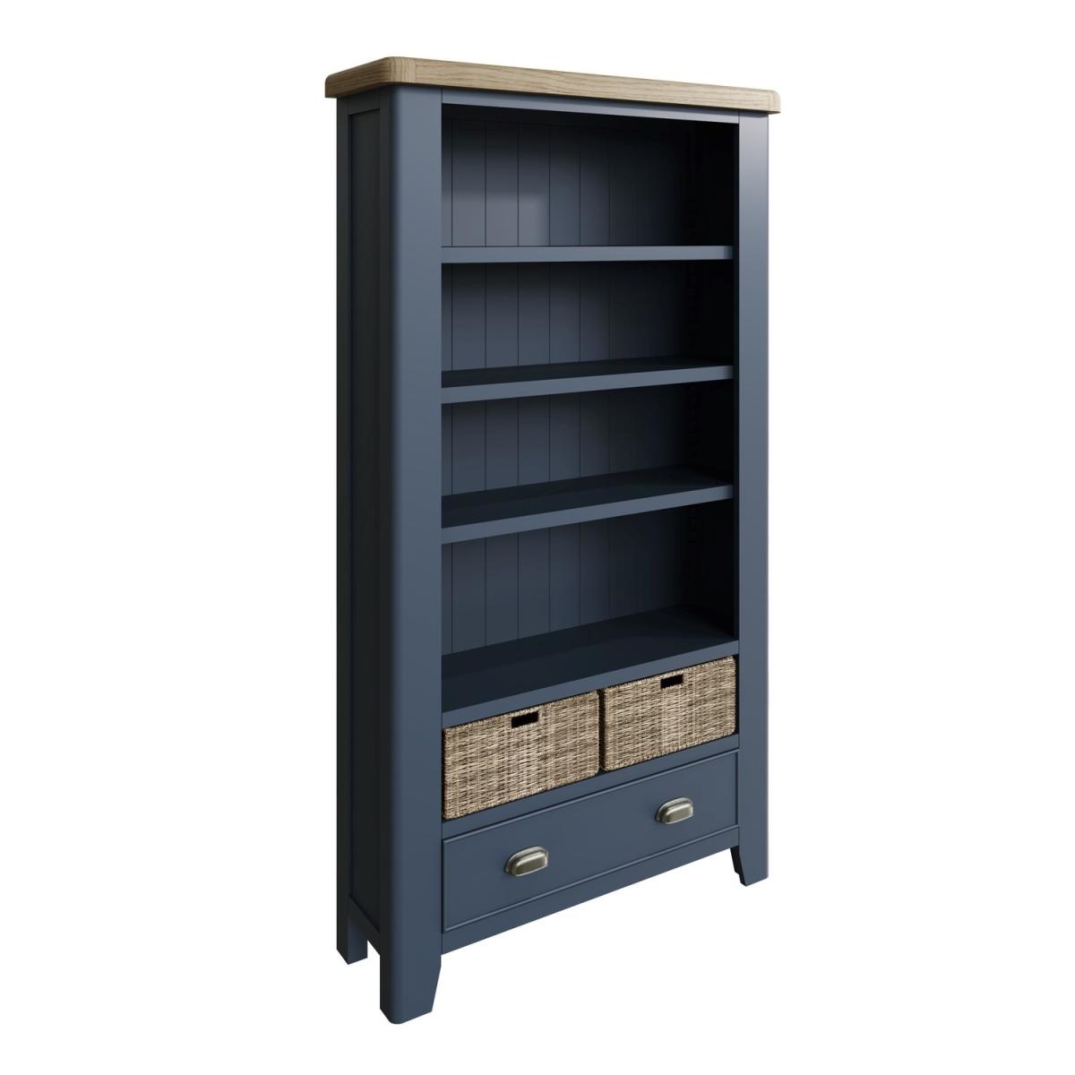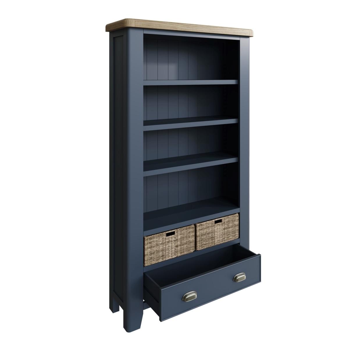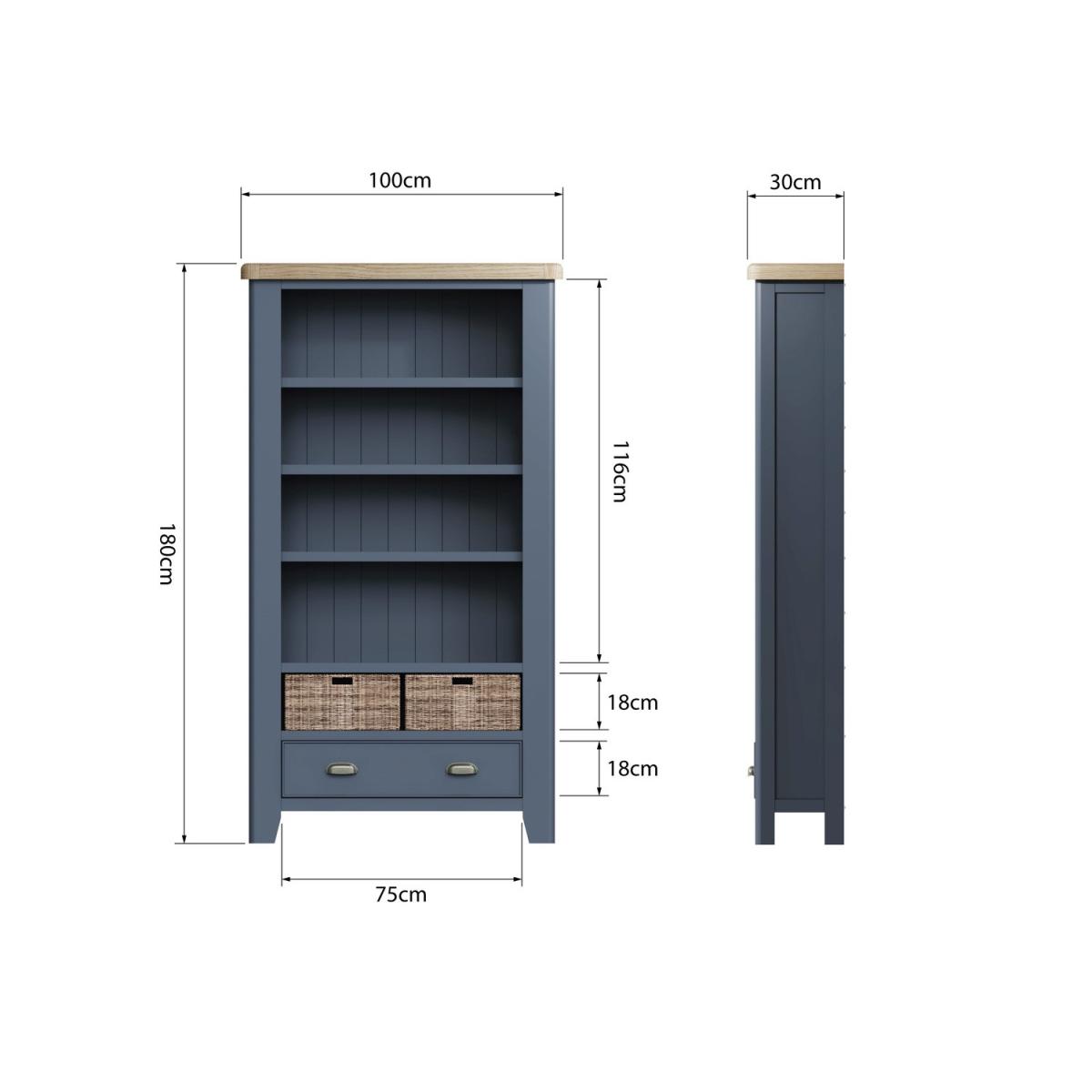 This bookcase strikes a great balance between practicality and style, making it versatile for many interiors. I love how the blue finish adds colour without overwhelming, while the wicker baskets provide a natural texture that enhances both traditional and contemporary spaces. It works particularly well in living rooms, home offices, or even in a cosy reading nook. For styling, consider grouping books by colour or height to create visual interest, and use the baskets for storing smaller items to keep things organised. Pairing it with soft textiles and neutral accents can help it blend seamlessly into a relaxed, inviting environment.