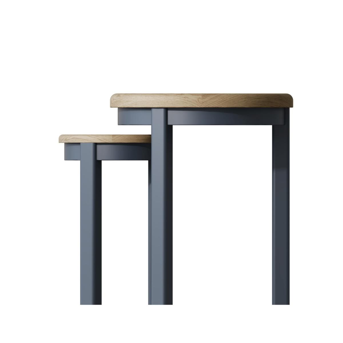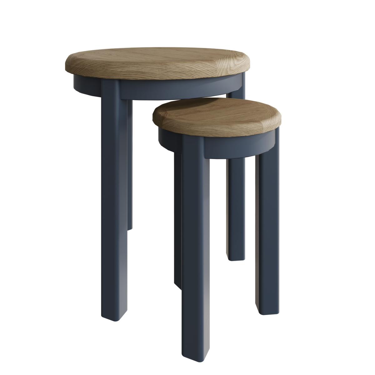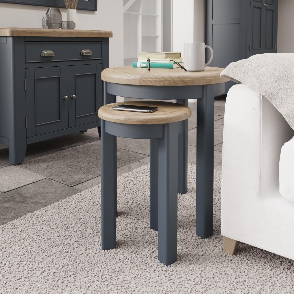 I love this set of tables for their versatile, layered look and functional design. The round nest makes it easy to tuck one table beneath the other when space is tight, perfect for small living rooms or apartments. The combination of natural wood and muted blue tones works well in a variety of interiors-from scandi and coastal to more traditional schemes. For styling, I recommend pairing it with cosy accessories like books, candles, or a small plant on top to add a personal touch without cluttering. It also works great in both casual settings and more polished spaces-just consider mixing with other textures and colours to create contrast and interest.