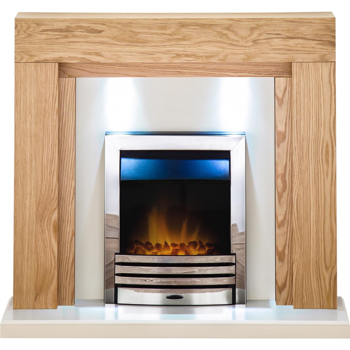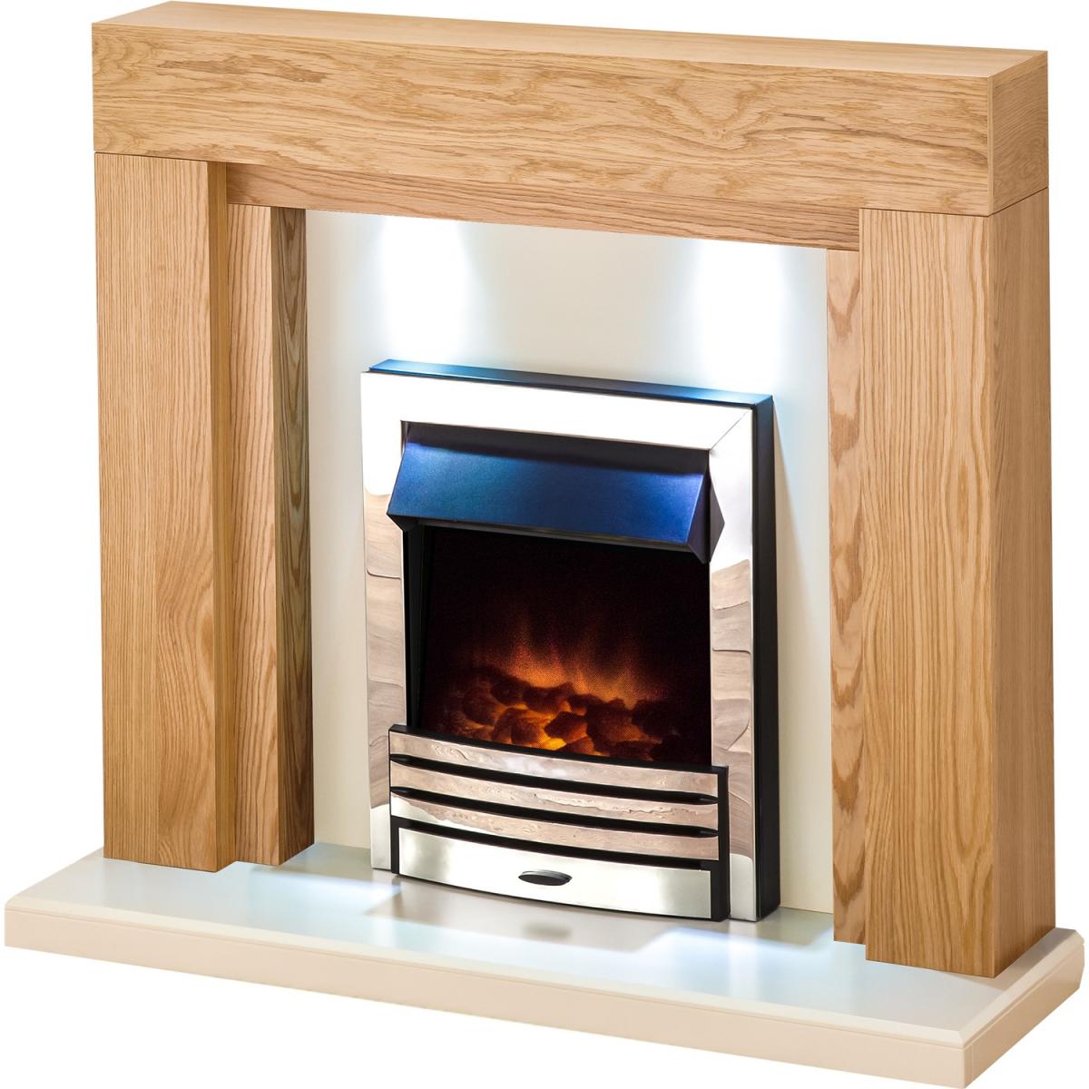 Oak and Chrome Electric Fireplace Suite - Adam Beaumont
