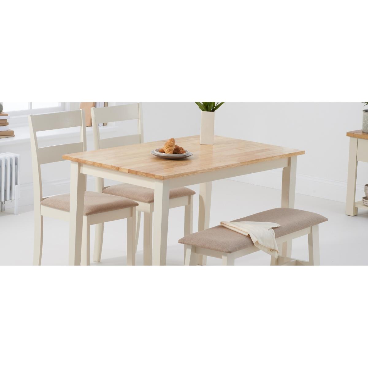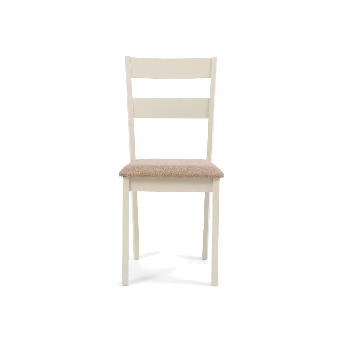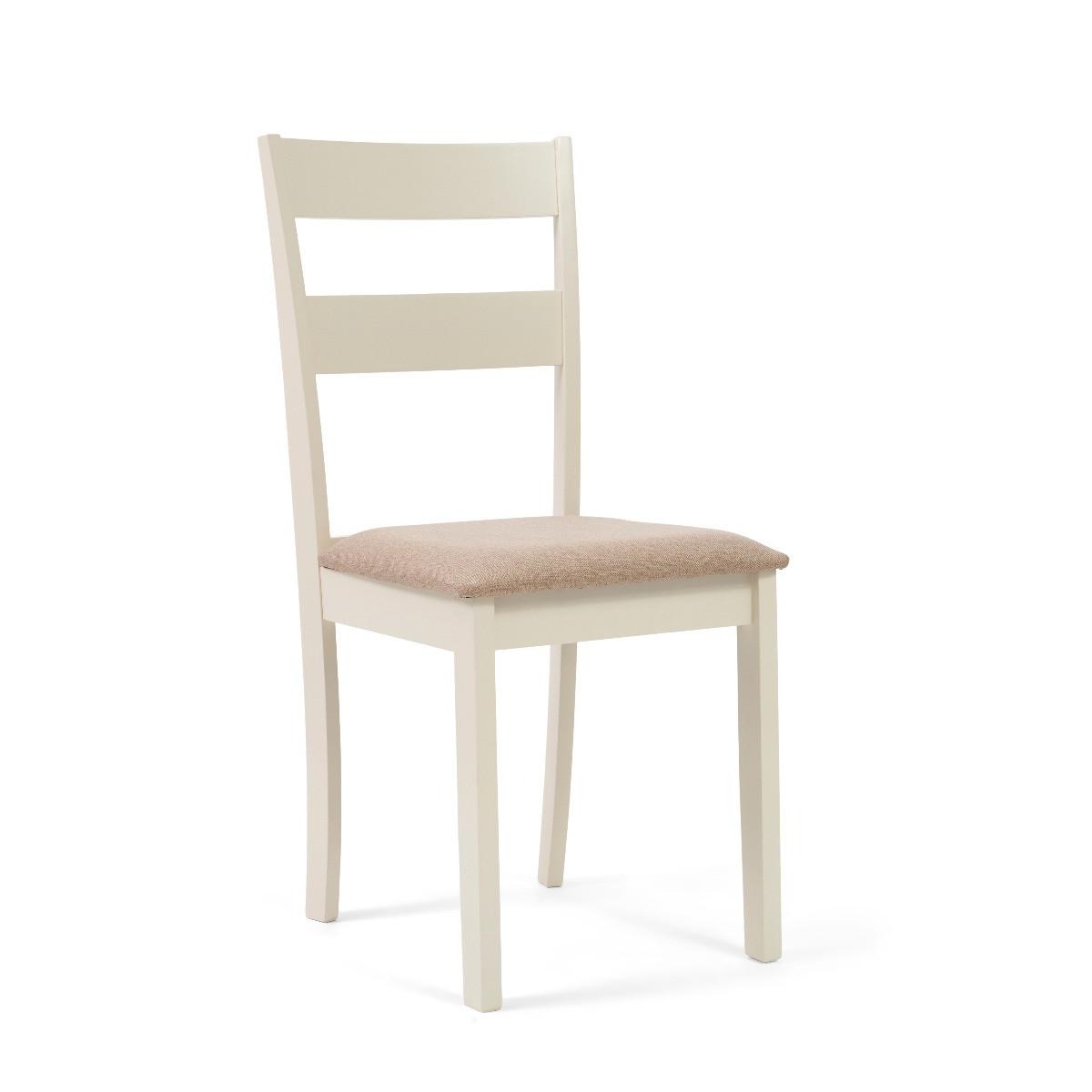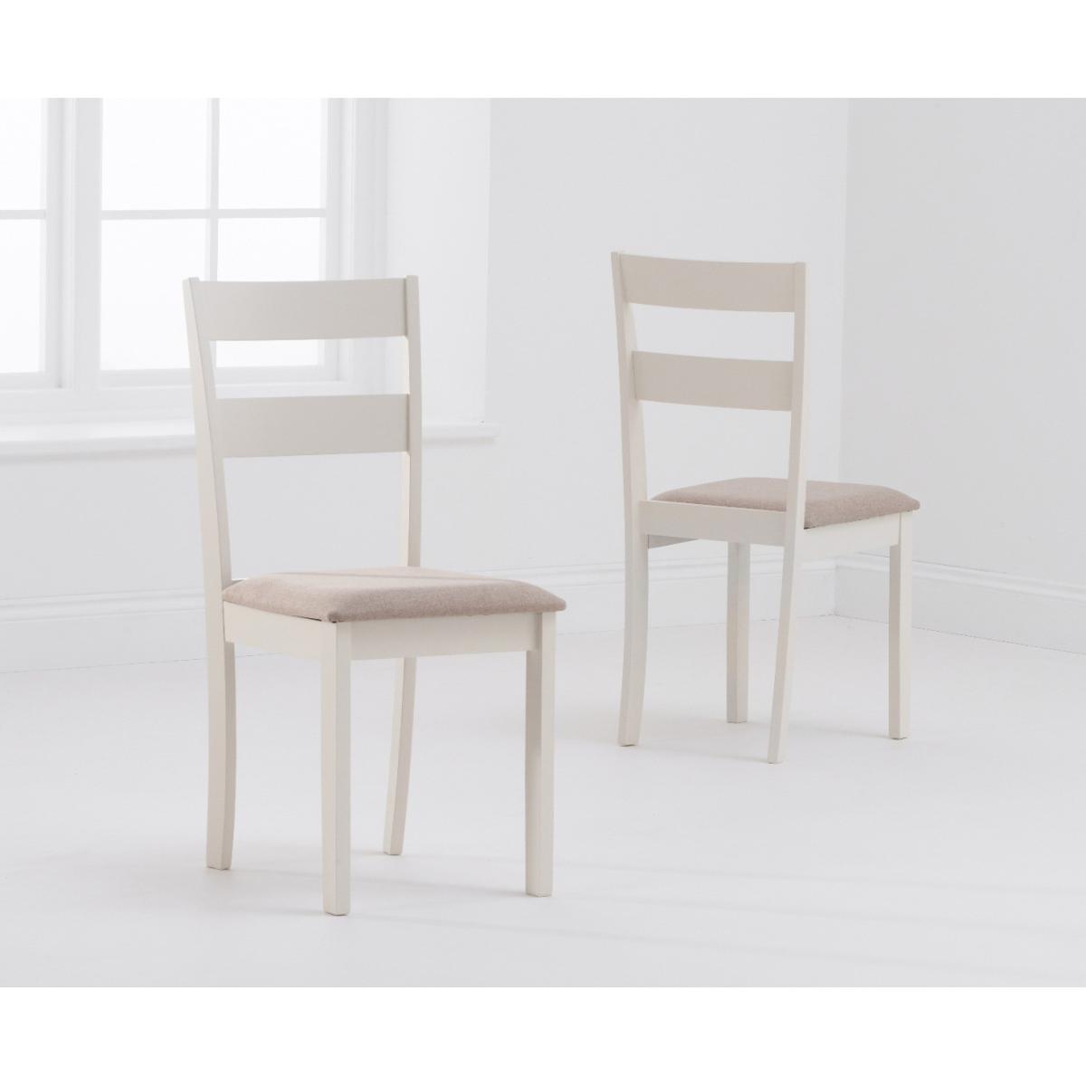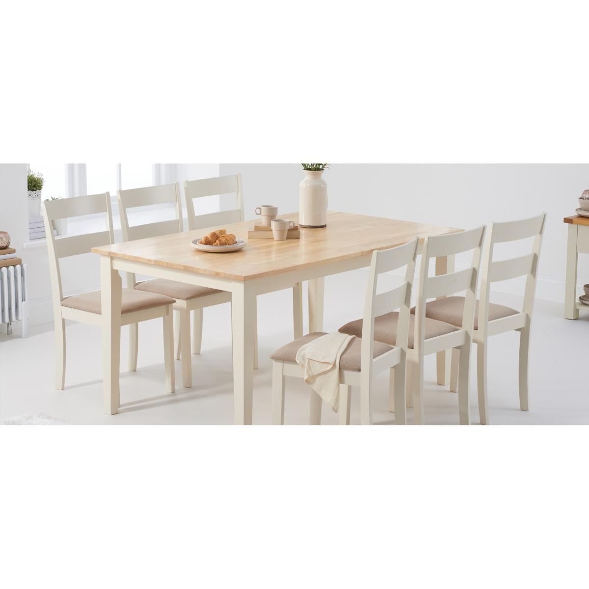 Chiltern Chairs with Cream Fabric Seats in a strong oak crafting with laddered backs and cream fabric seats