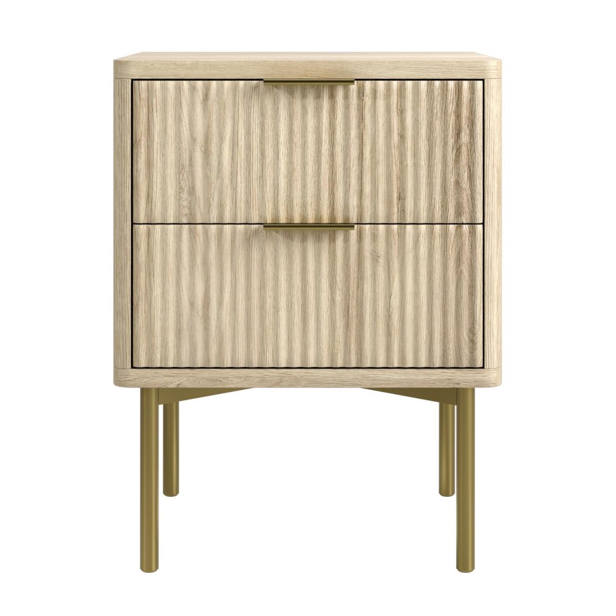 All about me The Valencia bedside table features two storage drawers for your essentials, and the textured oak effect drawer fronts add the perfect modern touch to any bedroom. Complete the look with the matching bedroom furniture pieces. Need to know Dimensions:W42 x D40 x H55 cm Weight: 15 kg Drawer dimensions:W37.4 x D30 x H15.2 cm Number of drawers: 2 Colour: Natural wood Finish:Oak effect Material: MDF with foil finish Assembly required: Yes