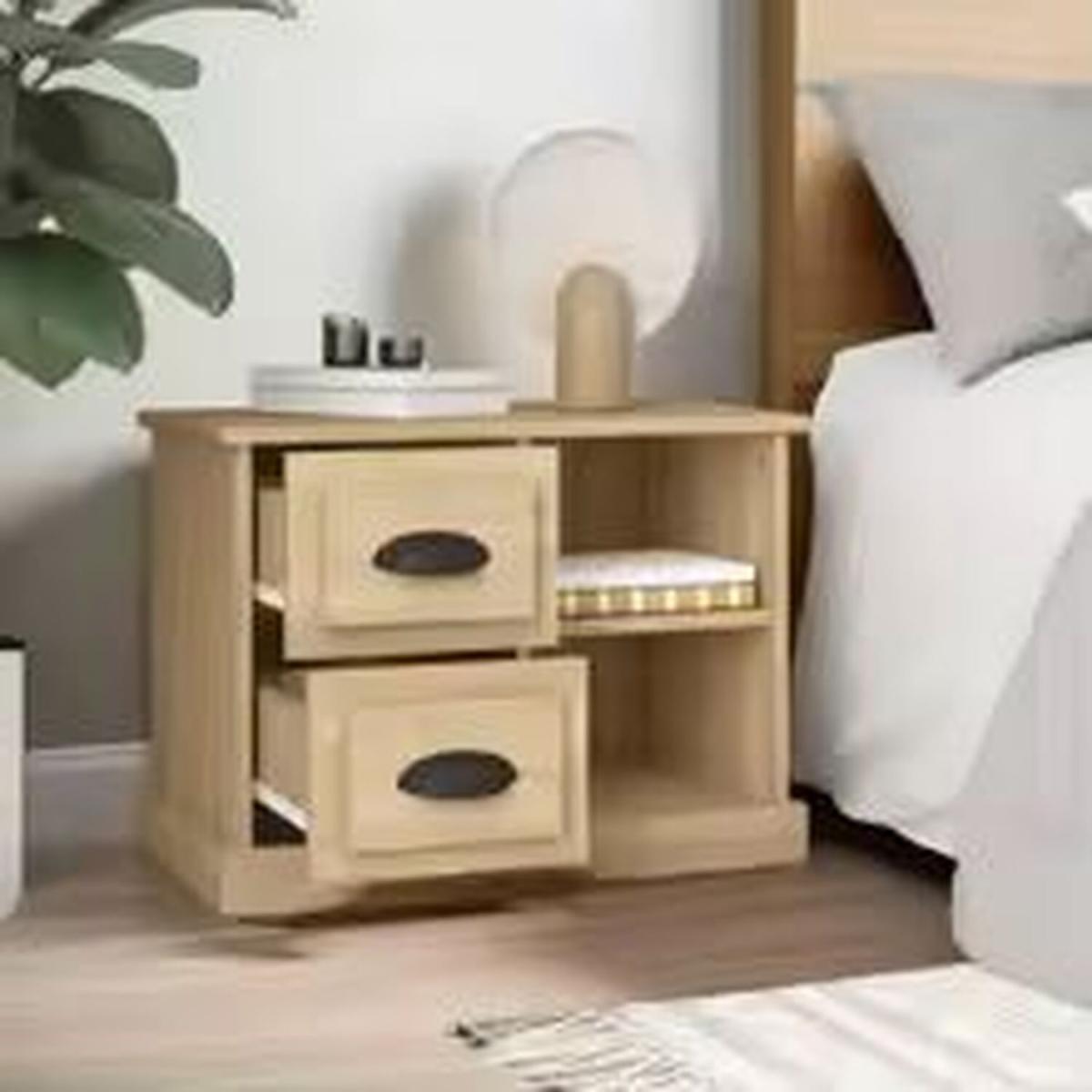 Oak Bedside Cabinet Stylish Nightstand with Storage - Brown