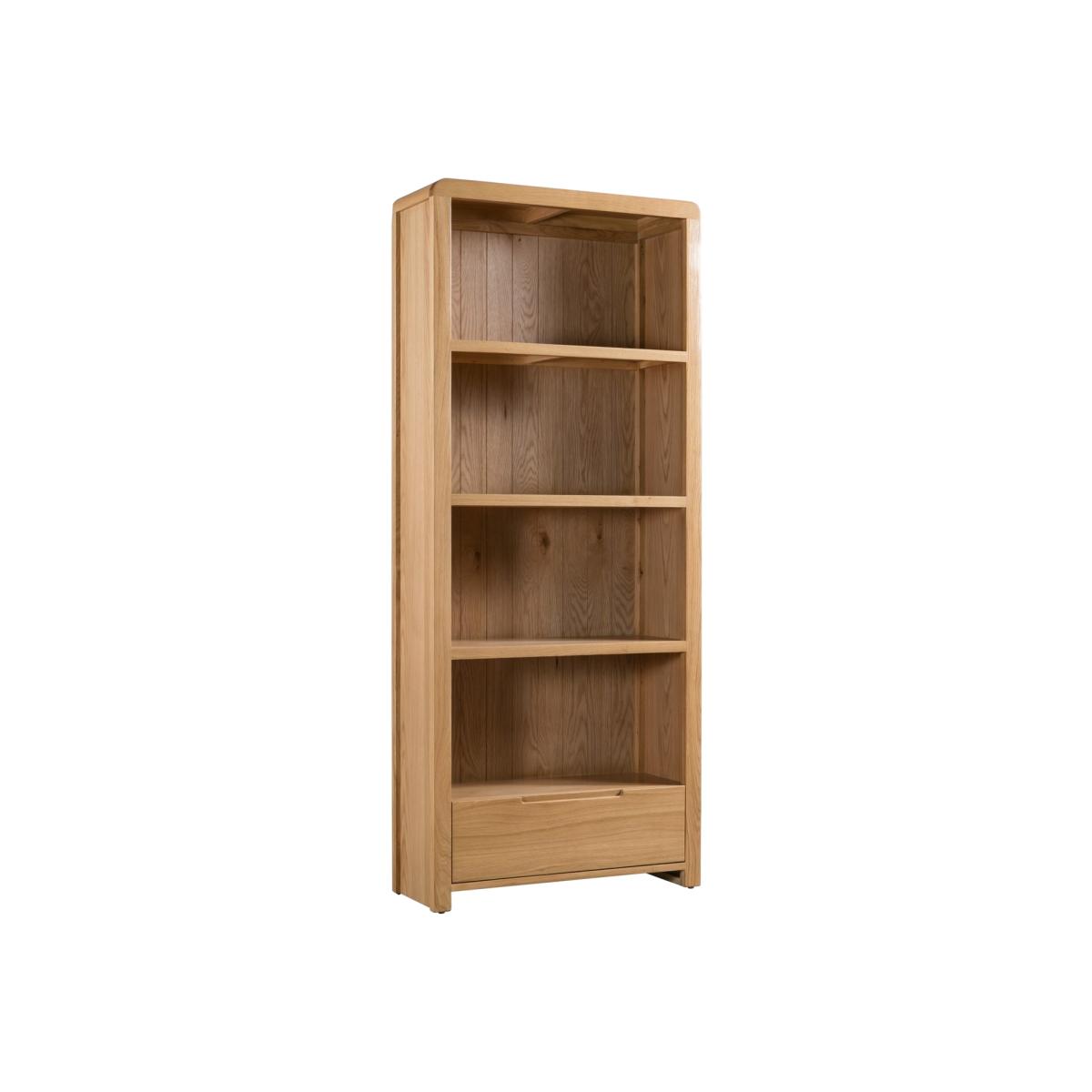 Dimensions W80 x H190 x D30 cm. Crafted from solid oak and oak veneers the Curve combines clean lines with a gentle curved edging adding a modern retro feel to any dining area. The Curve Tall Bookcase offers four shelves with ample space along with a large drawer. Part of the Julian Bowen Curve Dining and Occasional Collection. Features. Crafted from Solid Oak and Oak Veneers Gentle curved edging for a modern retro feel. Features 4 shelves and a large drawer for ample storage. Part of the Julian Bowen Curve Dining and; Occasional Collection Assembly required..