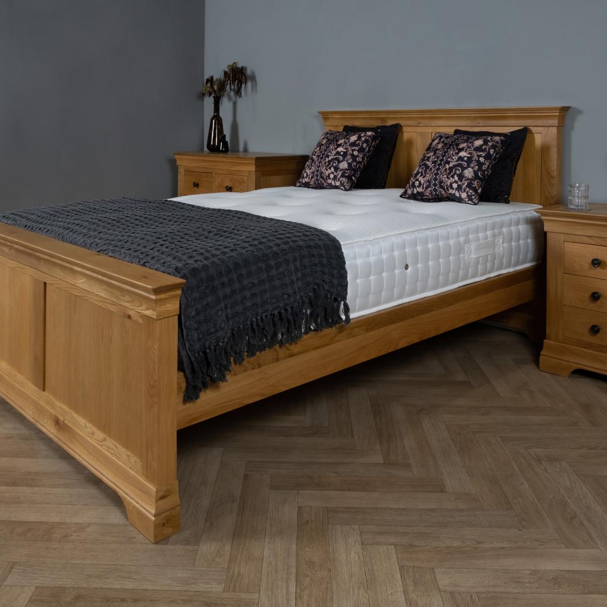 This Elm Home and Garden bed is where luxury and style meet comfort at last. The highest quality oak is used in this bed so that the natural grain shows all the lovely character of the wood and brings a natural, earthly feel to your space. The bed comes part assembled, so you will have it set up with minimal fuss. Sturdy construction means you will be enjoying it for many years to come, and the fine finish ensures its the luxury meeting your desire. Every corner and every detail on this bed has been carved with your comfort in mind so that every night is more peaceful than the last. Order yours now and make this magnificent piece from Elm Home and Garden the centre of your bedroom.