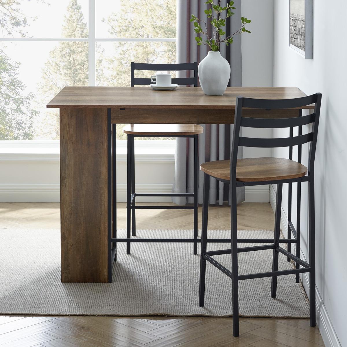 Oak Drop Leaf Bar Table with 2 Black Stools - Foster