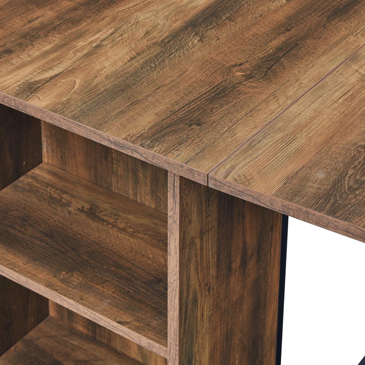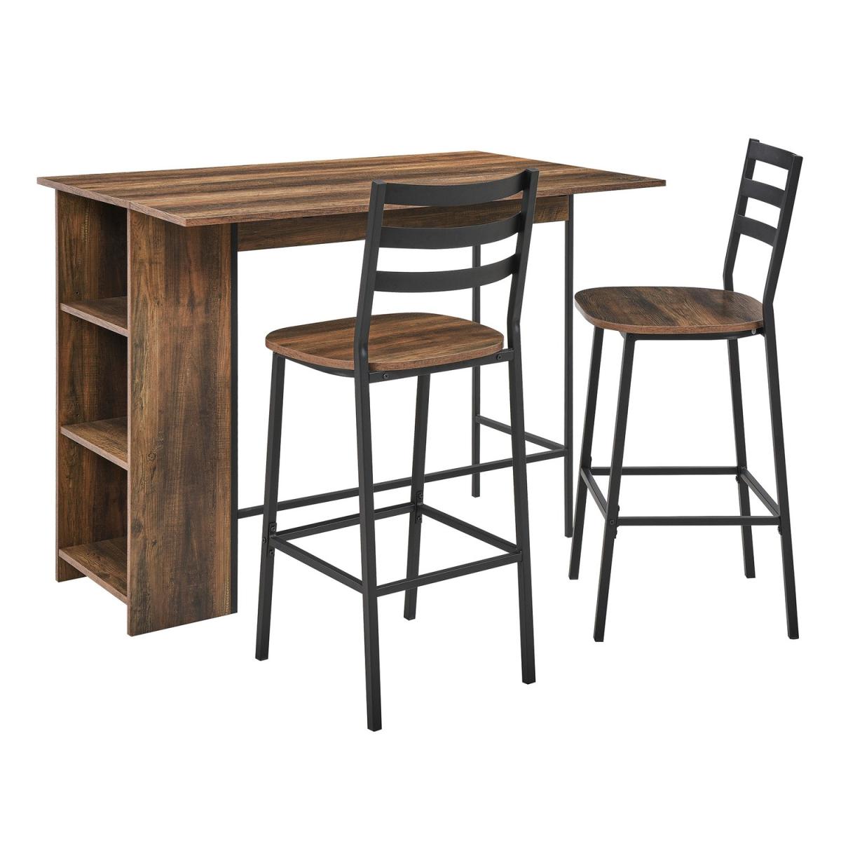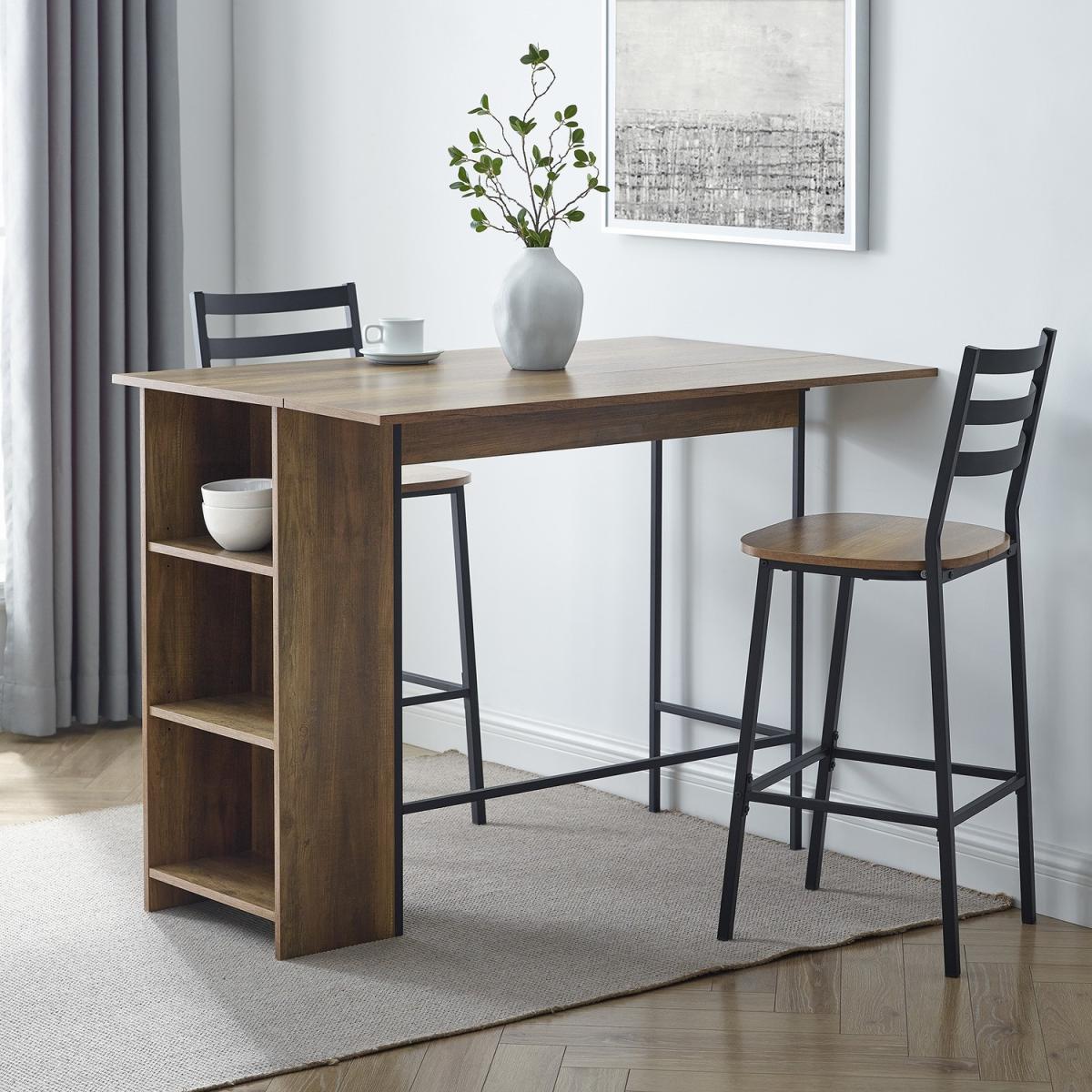 This drop-leaf storage kitchen set is ideal for small space living situations. If you're looking to ramp up your storage, counter space, or create a place you can peacefully dine, this kitchenette is there to support you. Featuring a bar table with storage and two bar stools, the perfect set has already been created for you.