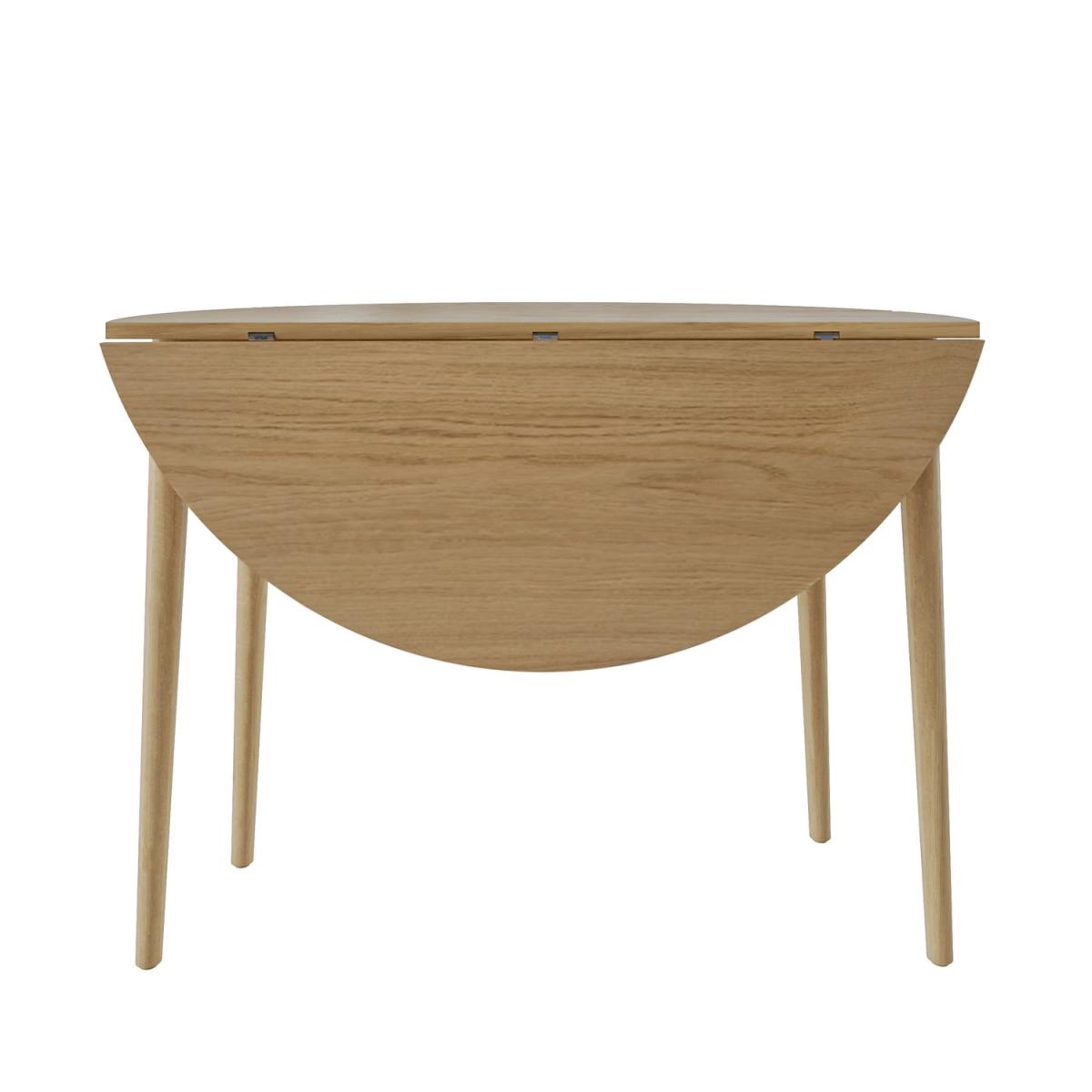 This bundle includes: Round Oak Drop Leaf Dining Table - Rudy 2 x Burnt orange Fabric Dining Chairs with Oak Legs - Colbie Features we love Space saving dining table for any dining space Natural wood colour with a beautiful wood grain effect Crafted with solid and veneered oak for durability Sleek, round tapered legs add a final finishing touch These Colbie dining chairs are upholstered in a luxurious textured chenille fabric Featuring sleek oak legs Need to know Dining Table Information Dimensions:W100 x D30/100 x H75 cm Seats: 2-4 people Product weight: 22kg Product Finish: Oak Material:MDF oak veneered and solid oak Assembly required:Yes, just the legs to affix Dining Chair Information Dimensions: H79 x W57 x D60 cm Finish: Burnt orange textured chenille fabric with sleek oak legs Material: Chenille fabric Number of chairs: 2 Assembly required: Yes Range: Colbie