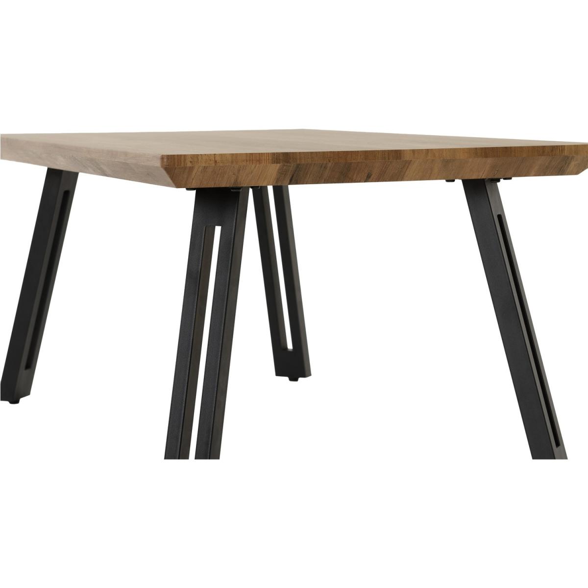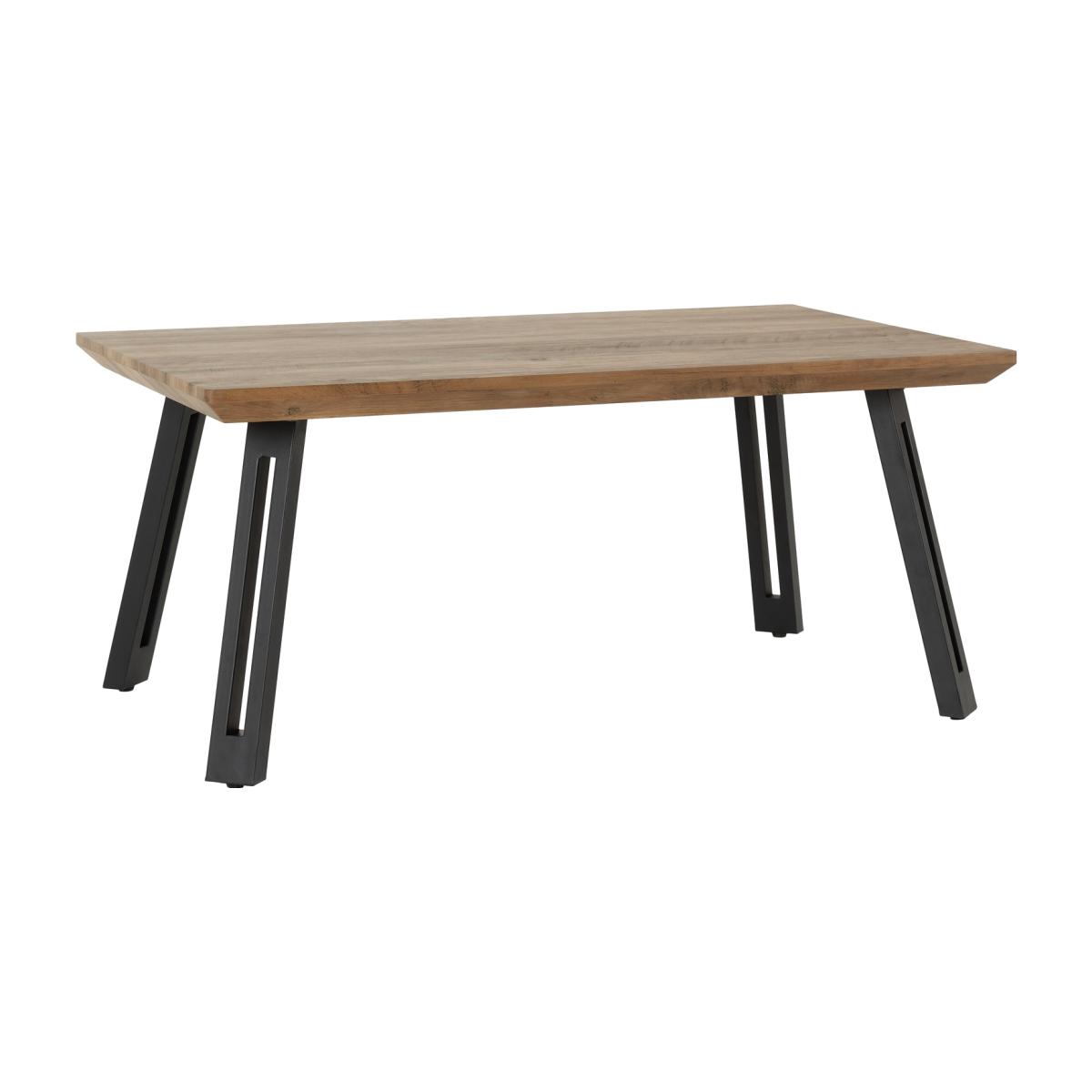 The embodiment of contemporary industrial design. This Quebec coffee table has a rustic aesthetic that's perfect for modern living. All focus is drawn to the oak effect wood top which features a beautiful wood grain full of rich and warm tones. It has its own natural lustre giving the table a fabulous sheen. Standing upon substantial blackmetal legs,you're ensured of the tables' quality, it's sure to last the test of time.