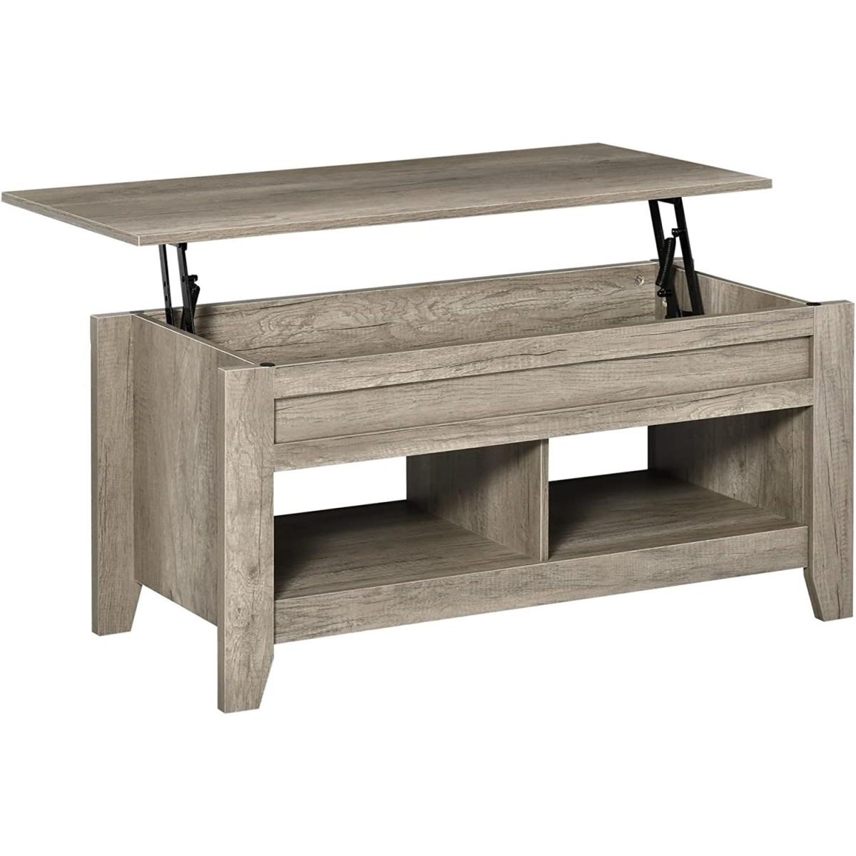 White & Oak effect LIFT-TOP DESIGN:The table top of this modern coffee table can be lifted up and forward to create a work surface. The high-quality mechanical device allows the coffee table to be raised and lowered without noise HIDDEN STORAGE: Under the table top, a compartment is designed to store different items such as magazines, laptops, remote controls, and game controllers SOLID & STABLE:This lift top coffee table is made of E1 grade particle board and metal lift mechanism. With solid construction, this living room coffee table is not easy to wobble after correctly assembled PROTECTIVE PADS:The protective pad is connected between the table-top and the legs as a bumper, which can protect the table top and ensure silence and security when lifting Max Weight: 20KG Assembly Required
