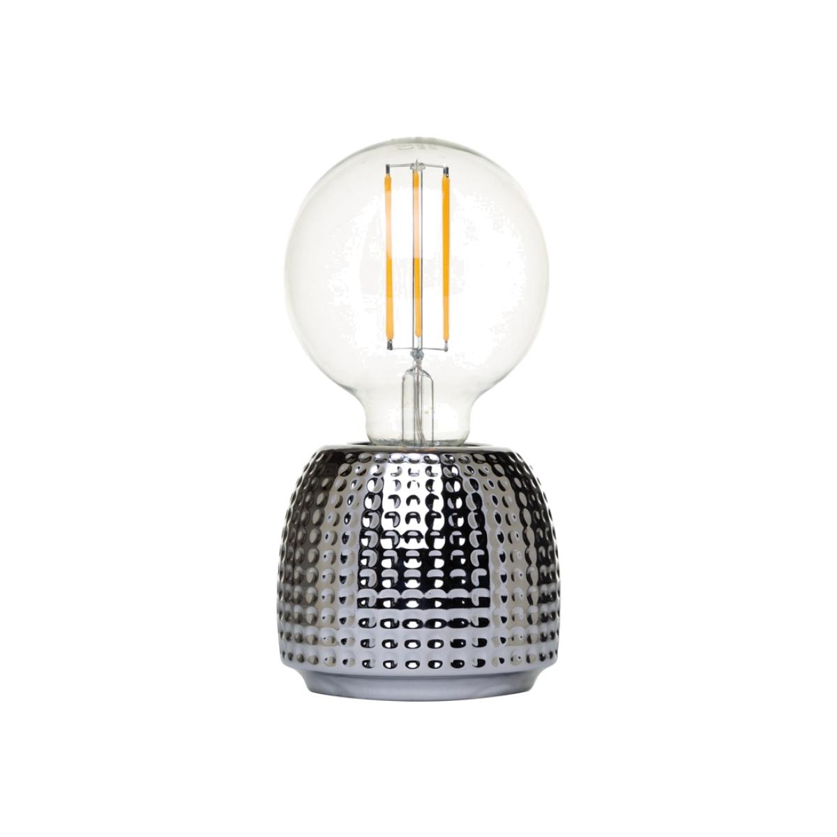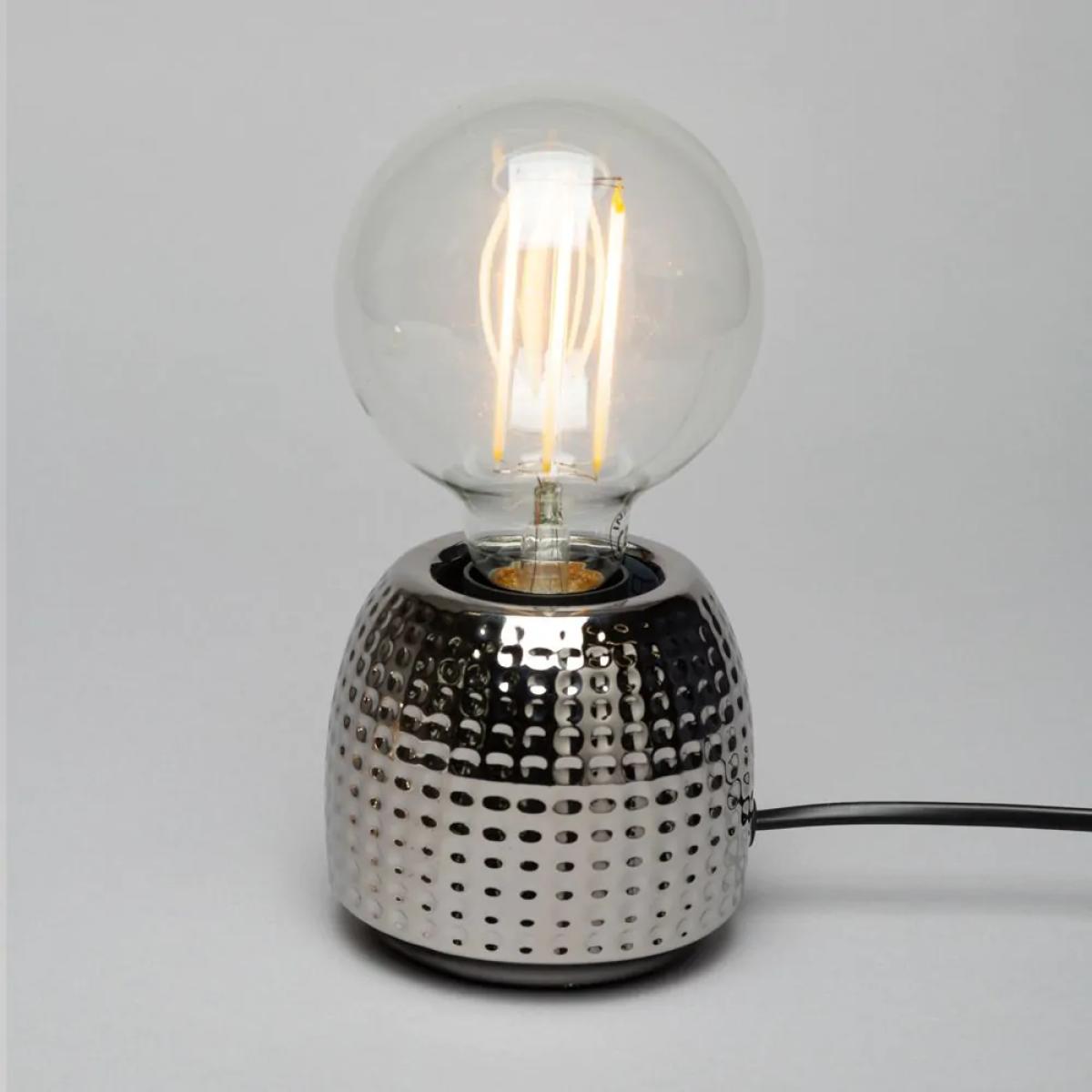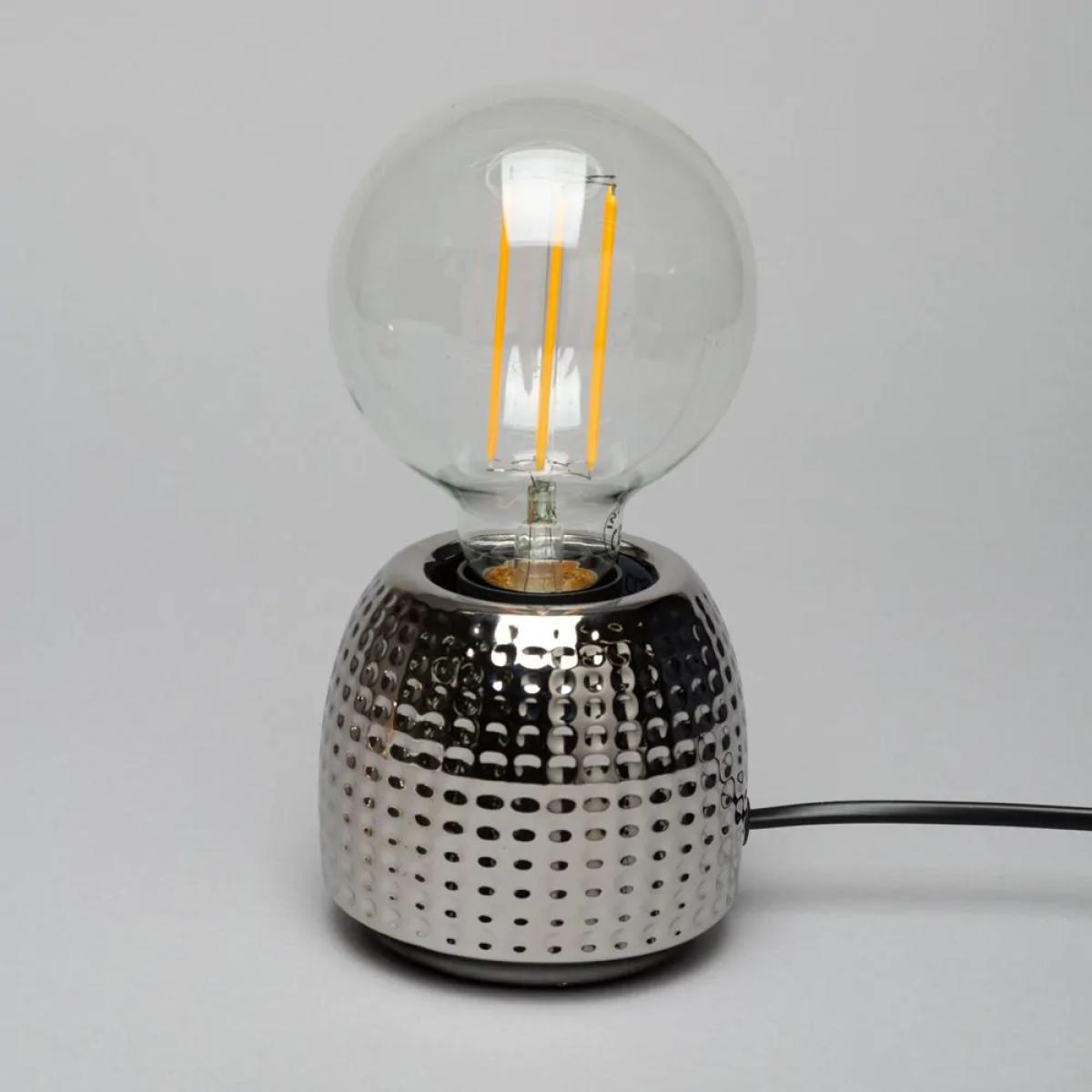 Not all table lamps are boring. The Oak Silver Embossed Base Table Lamp, brings an unusual touch to your home. The embossed base of this lamp really catches your eye, while the exposed bulbs really lets off a brilliant amount of light, illuminating the whole area effectively.