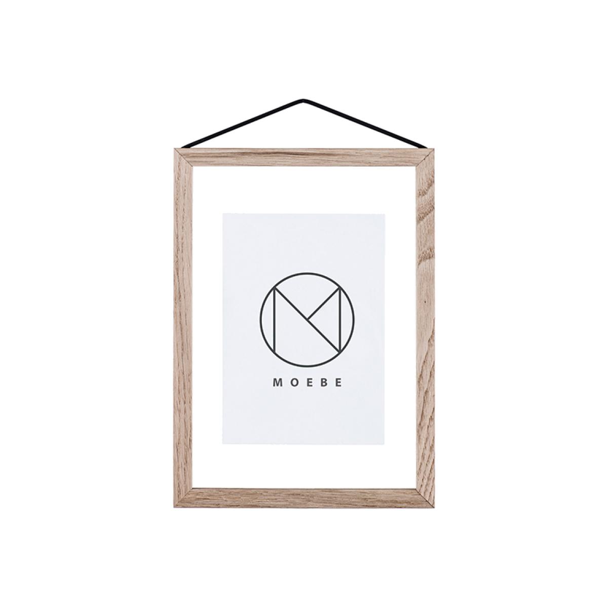 This beautifully refined frame design by MOEBE connects the four sides of the oak frame with a rubber band, allowing simple construction, strong structure and elegant presentation. A perfect blend of contemporary style and classic materials, this frame is crafted from unvarnished oak wood, two panes of strong plexiglass and a black rubber band. The rubber band reliably holds the components together, as well as acting as a fastening to hang the picture. Ideal for mixing and matching across the range, this frame presents photos, prints and dried flowers in a unique style and would be a perfect way of adding contemporary charm to any room. Fits an A5 print.