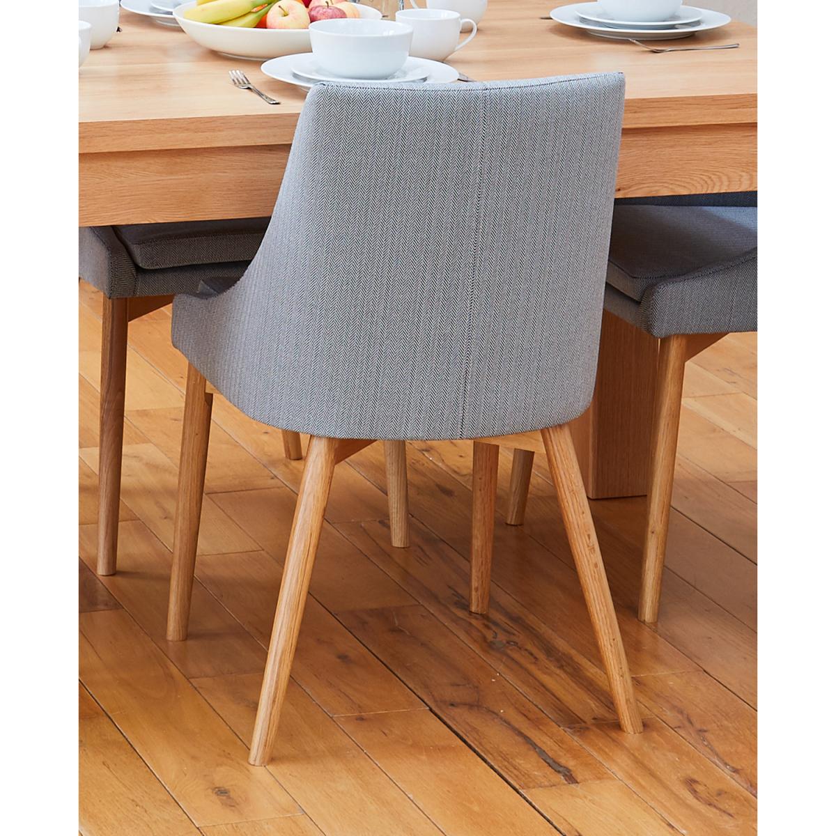 I’m a fan of these grey‐upholstered oak chairs because their clean lines and light-wood legs work seamlessly in Scandi, modern farmhouse or minimalist schemes. The soft, neutral fabric pairs well with pale woods and muted accents, while the sturdy frame makes them ideal for everyday dining. To style, team them with a matching light-oak table, layer in a natural-fibre rug for texture and add simple linen cushions in dusty blues or greens for a subtle pop of colour. Their compact shape also makes them a smart choice for smaller kitchens or home-office corners.