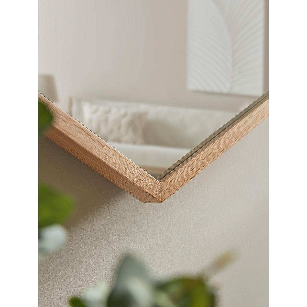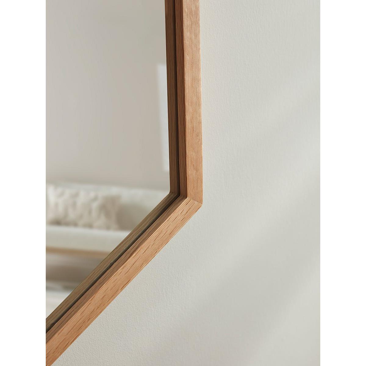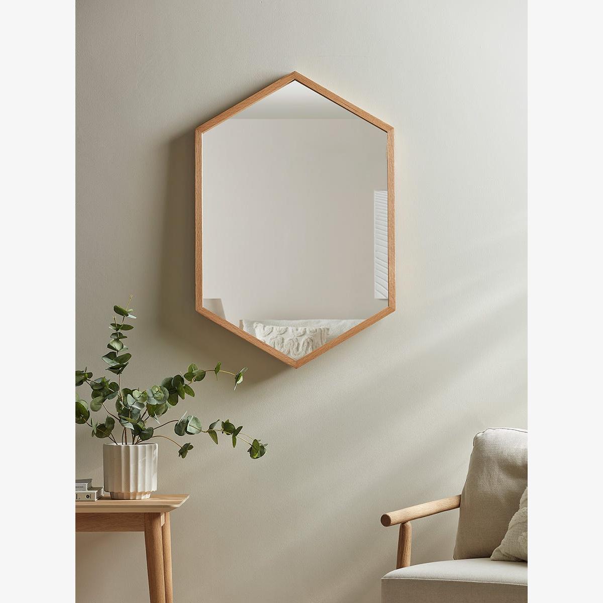 With a warm oak frame, this unusual hexagonal shaped mirror is a an unusual addition to a wall. Hang above your dressing table or in your hallway to brighten up your space and add depth to your home.