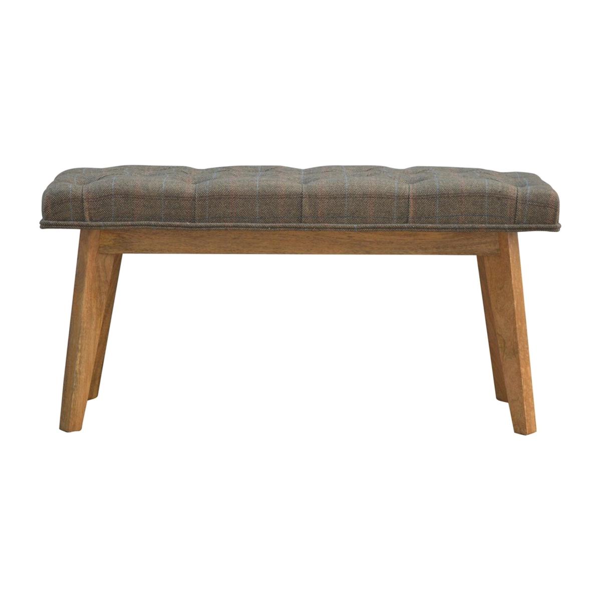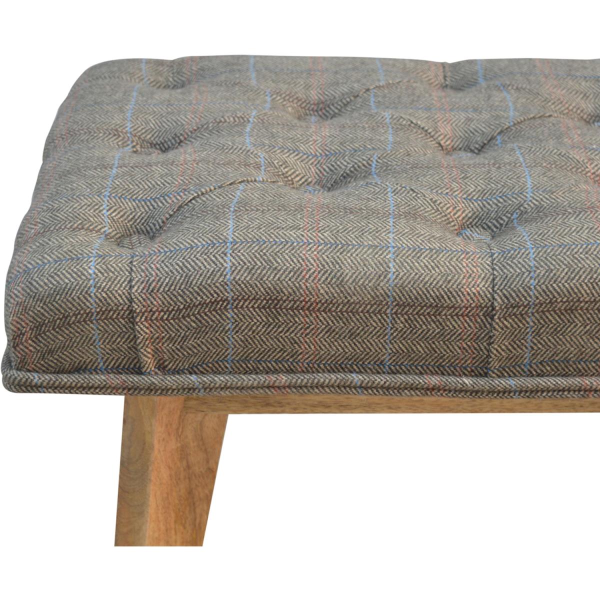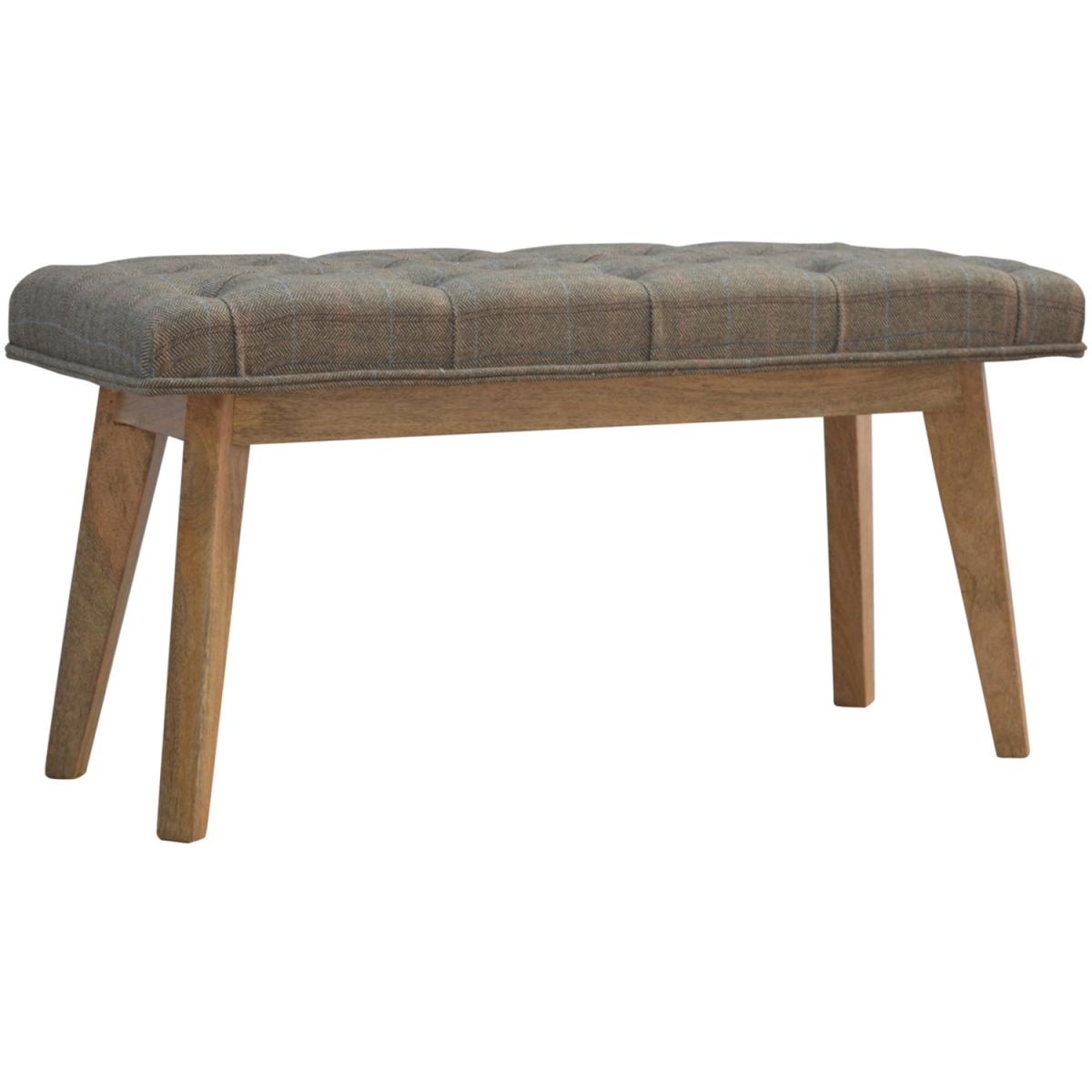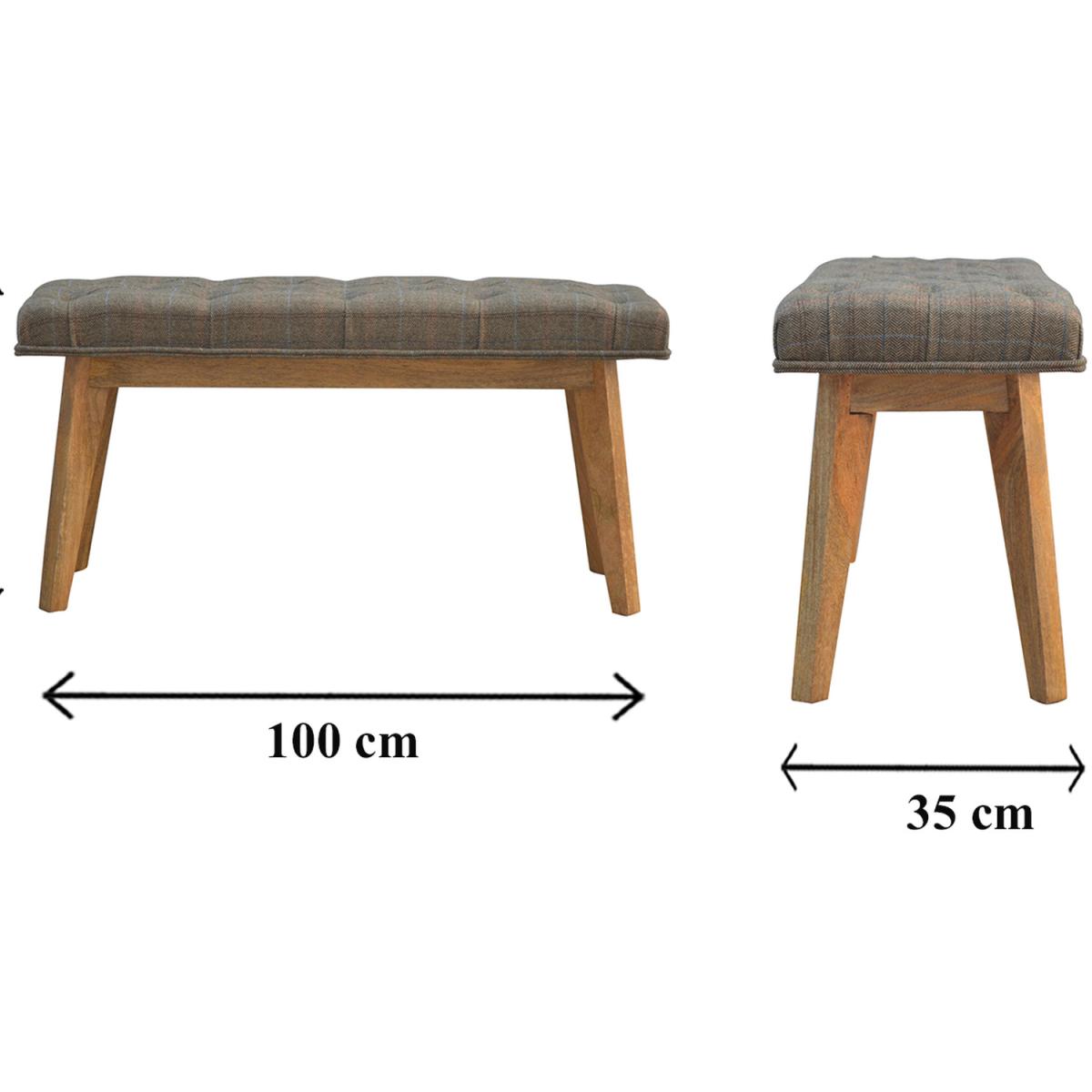 This bench is ideal for extra seating and is constructed from 100% solid mango wood & upholstered in multi-tweed. Other features include deep button tufts and 4 Nordic-style legs which have a smooth oak-ish finish. Please be advised that you may encounter variations from batch to batch with this being a Natural wood product.