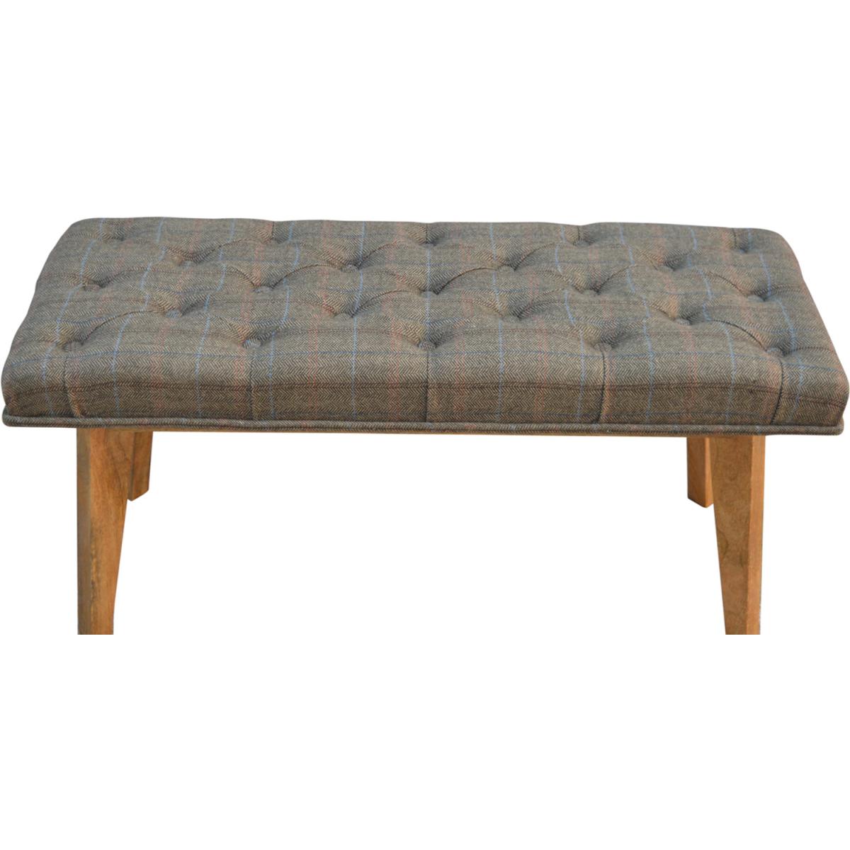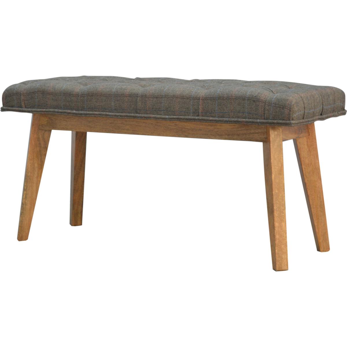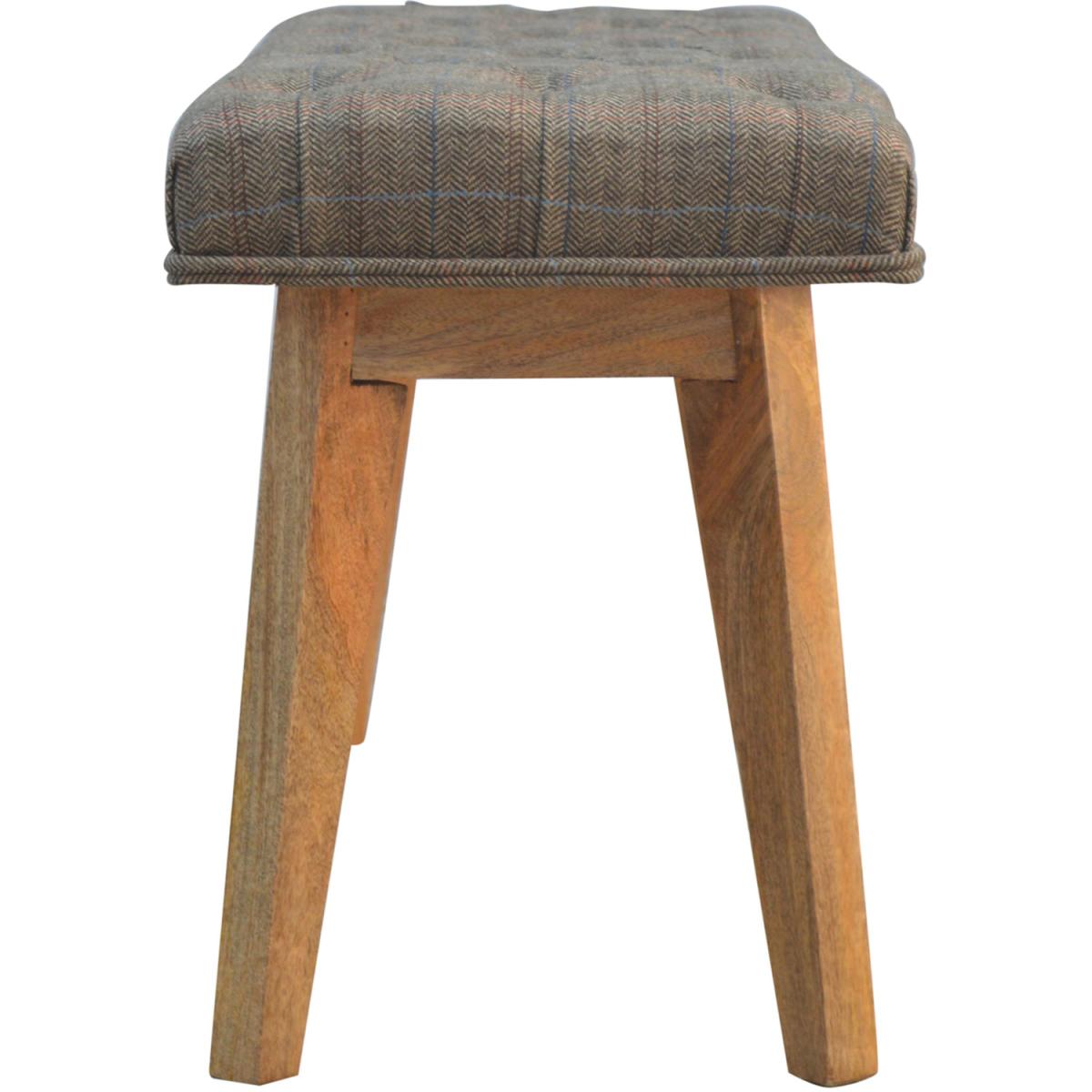 This bench is ideal for extra seating and is constructed from 100% solid mango wood & upholstered in multi-tweed. Other features include deep button tufts and 4 Nordic-style legs which have a smooth oak-ish finish. Please be advised that you may encounter variations from batch to batch with this being a Natural wood product.
