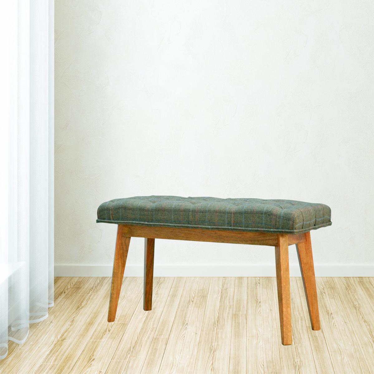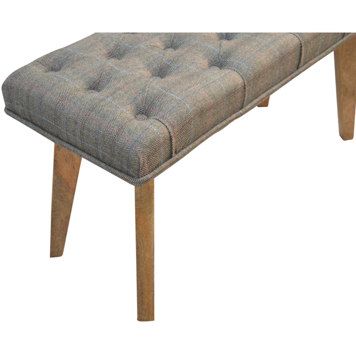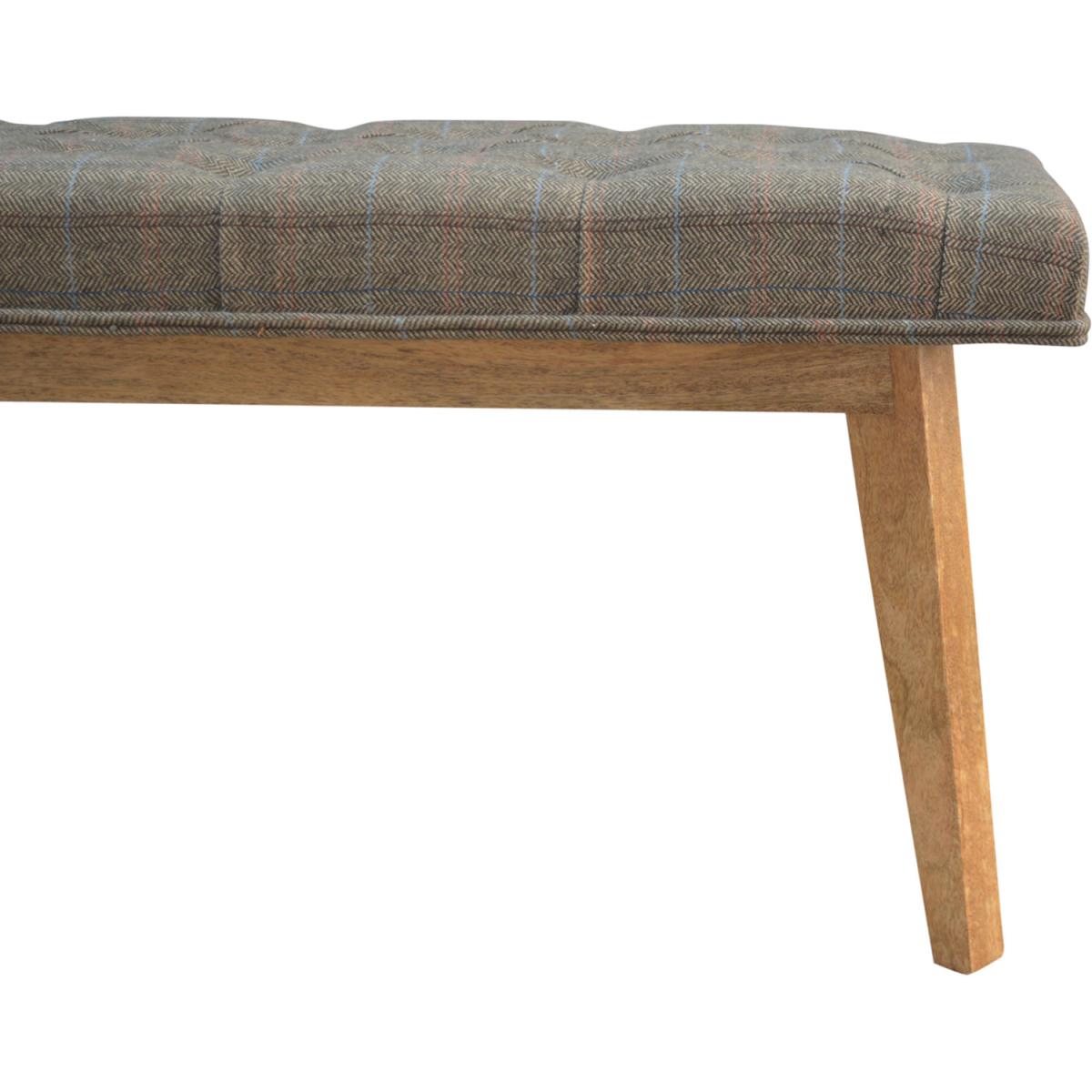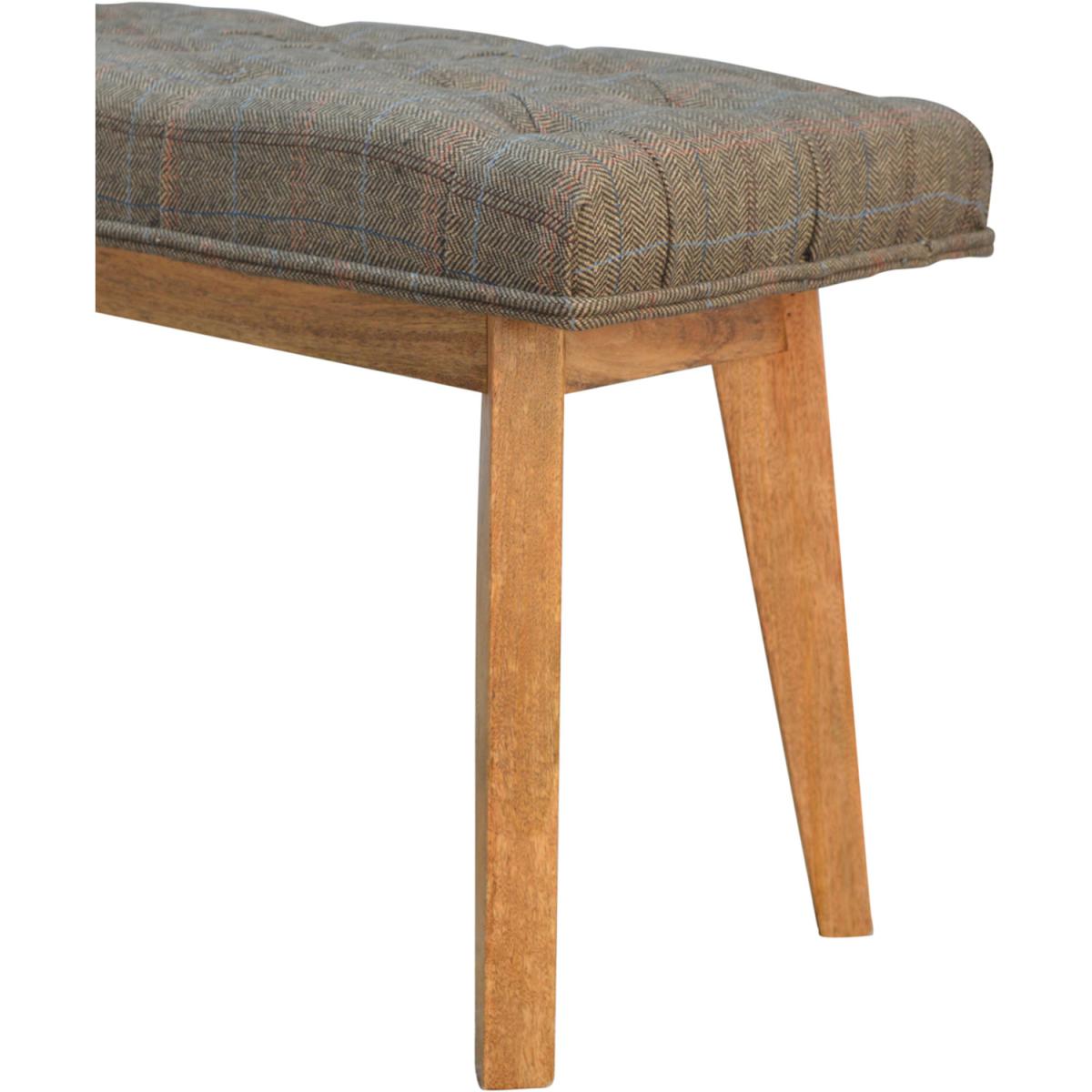 This bench is ideal for extra seating and is constructed from 100% solid mango wood & upholstered in multi-tweed. Other features include deep button tufts and 4 Nordic-style legs which have a smooth oak-ish finish. Please be advised that you may encounter variations from batch to batch with this being a Natural wood product.