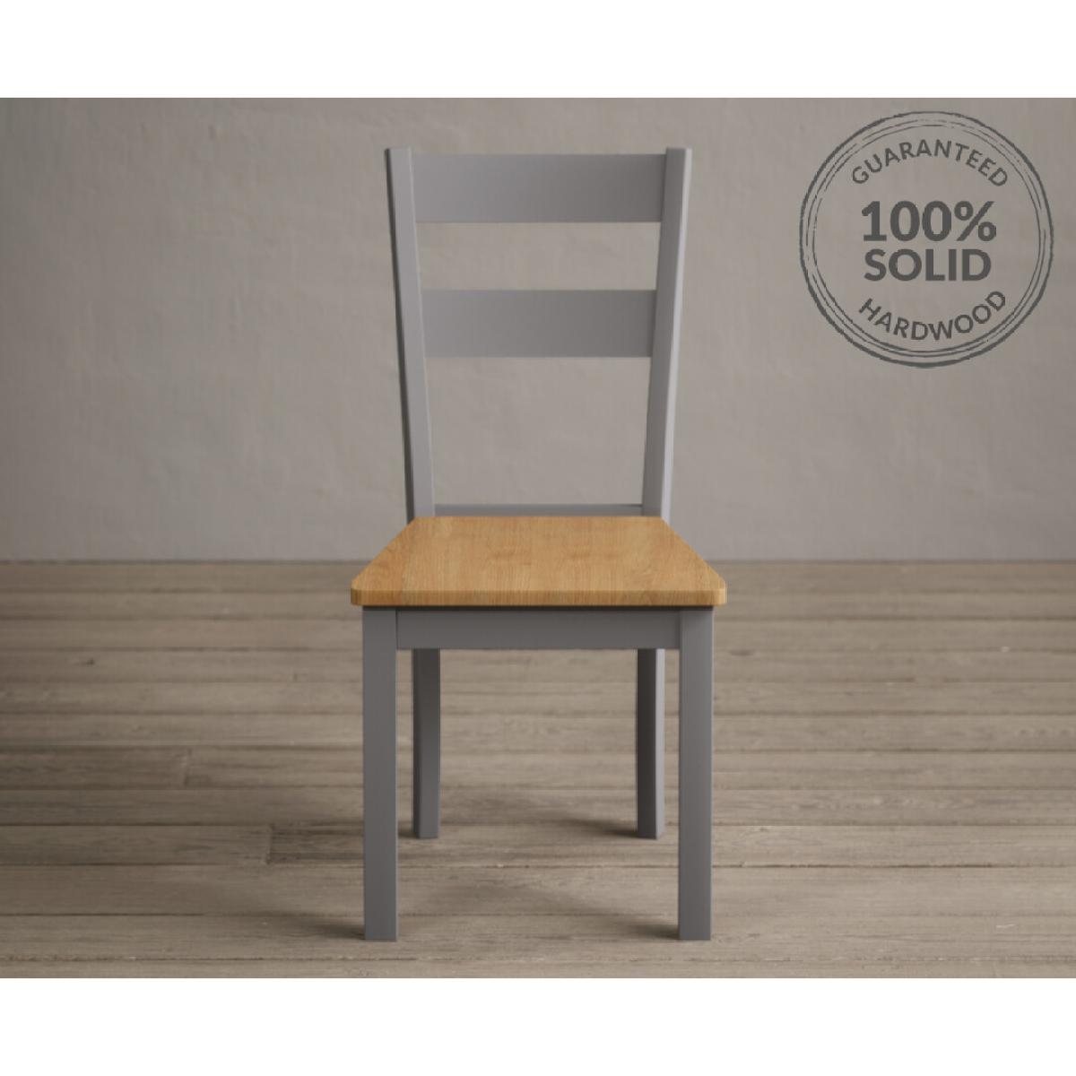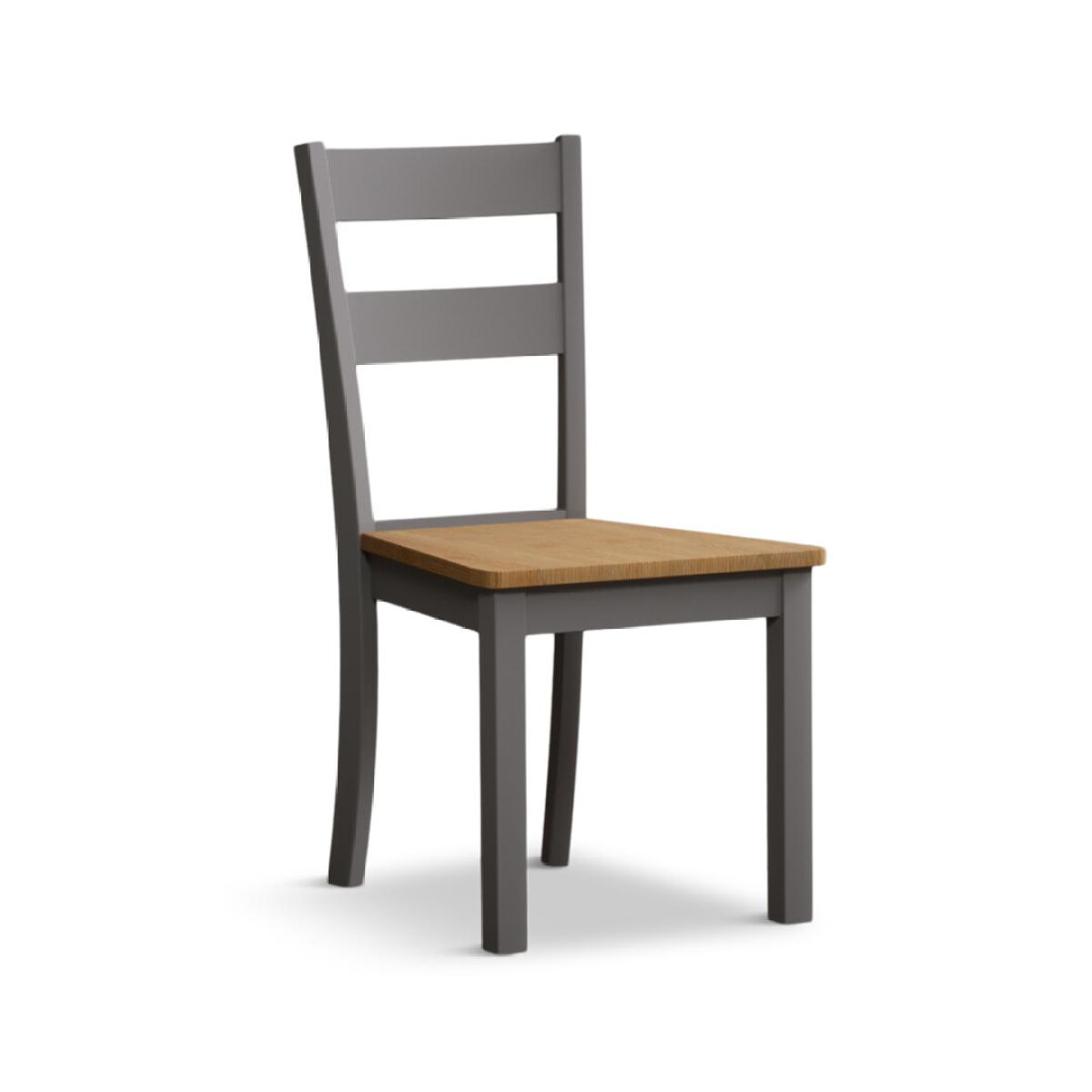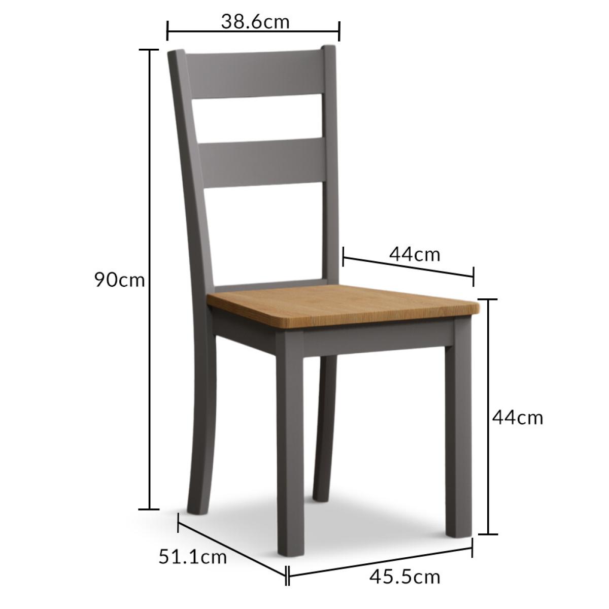 Kendal Light Grey Painted Dining Chairs with Oak Seat Pad feature grey-painted solid hardwood frames and comfortable oak seats.
