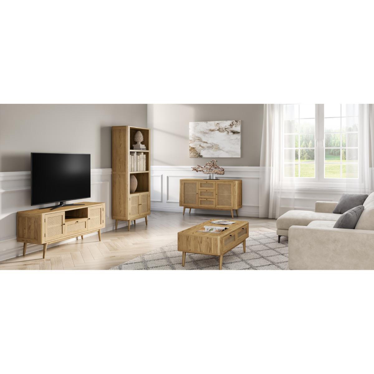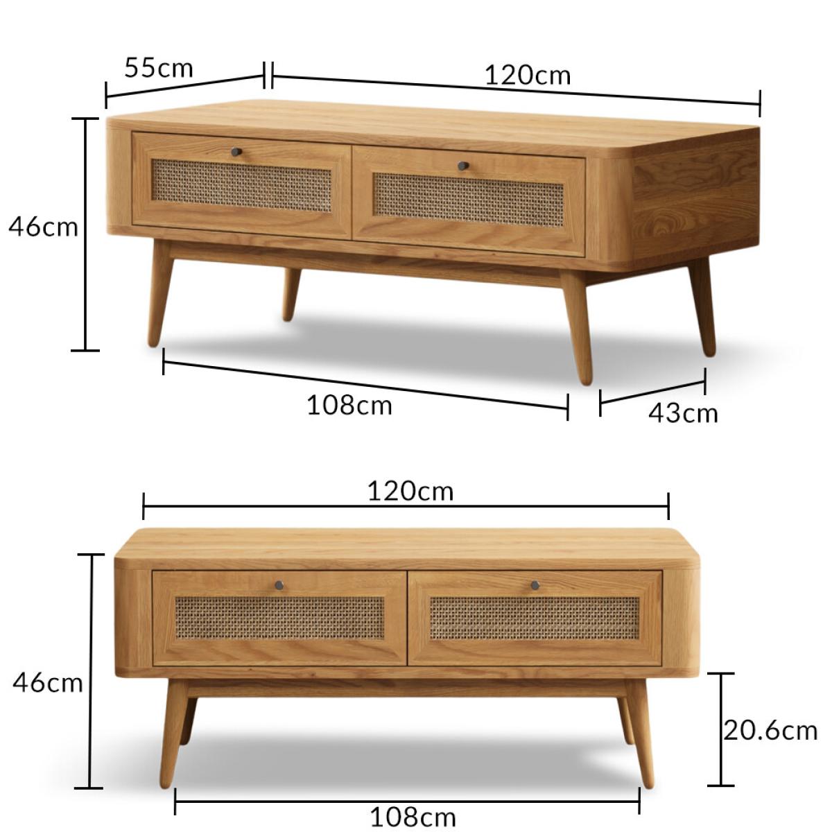 The oak rattan coffee table is a versatile piece that brings in a warm, natural touch to both modern and traditional interiors. I love how its light timber finish adds brightness to a space and pairs well with neutral colour palettes, while the rattan detailing lends a subtle texture that enhances visual interest. It works particularly well in scandinavian, coastal, or boho-inspired schemes but can also act as a neutral anchor in eclectic settings. For styling, keep the top surface clear with a few carefully chosen accessories like candles or a tray, and consider layering with textured textiles nearby for a cosy feel. Its practical size and drawers make it perfect for storage, keeping clutter out of sight and maintaining a clean look.