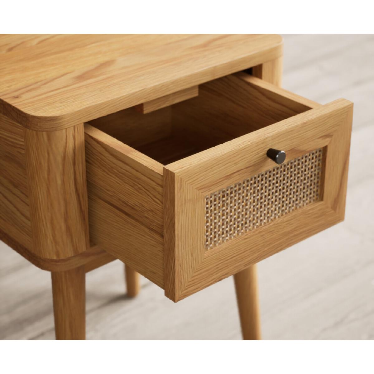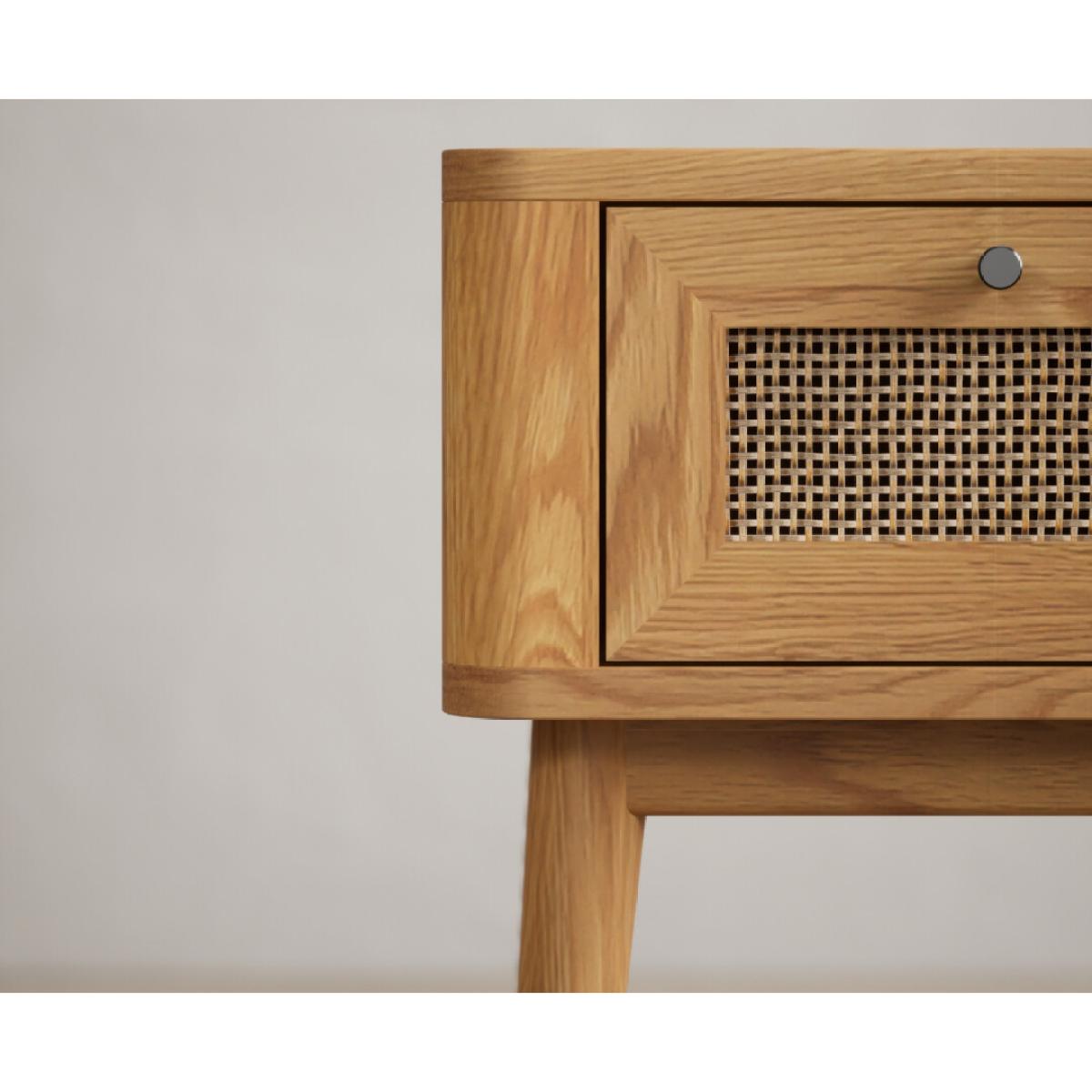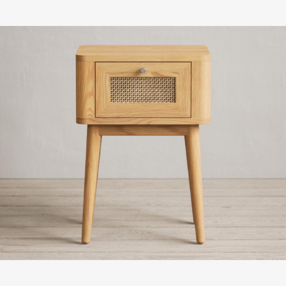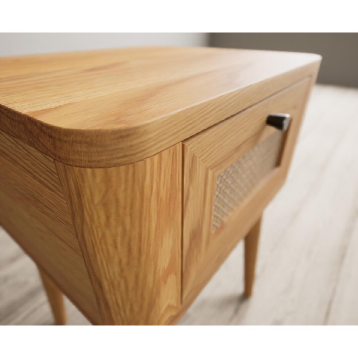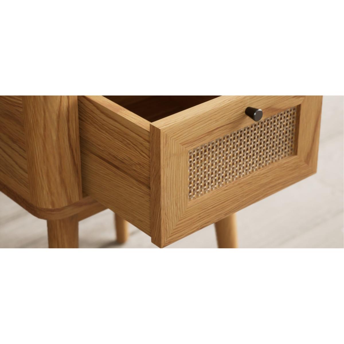 Oak Rattan Bedside Table