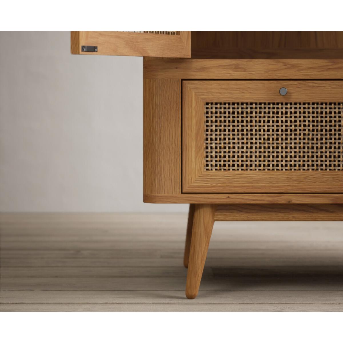 I’m a big fan of this rattan-fronted wardrobe because it combines the warmth of oak with a light, breathable weave that lifts even the smallest bedroom. It works particularly well in Scandi, boho or modern farmhouse schemes, where natural textures and clean lines are key. For styling, keep the top simple - a couple of woven baskets or a pair of ceramic vases won’t compete with the rattan panels. Inside, use matching wooden hangers and slim storage boxes to avoid clutter, and colour-coordinate clothes on show. The wardrobe’s mid-century legs also help it slot neatly into a compact room without feeling too heavy.