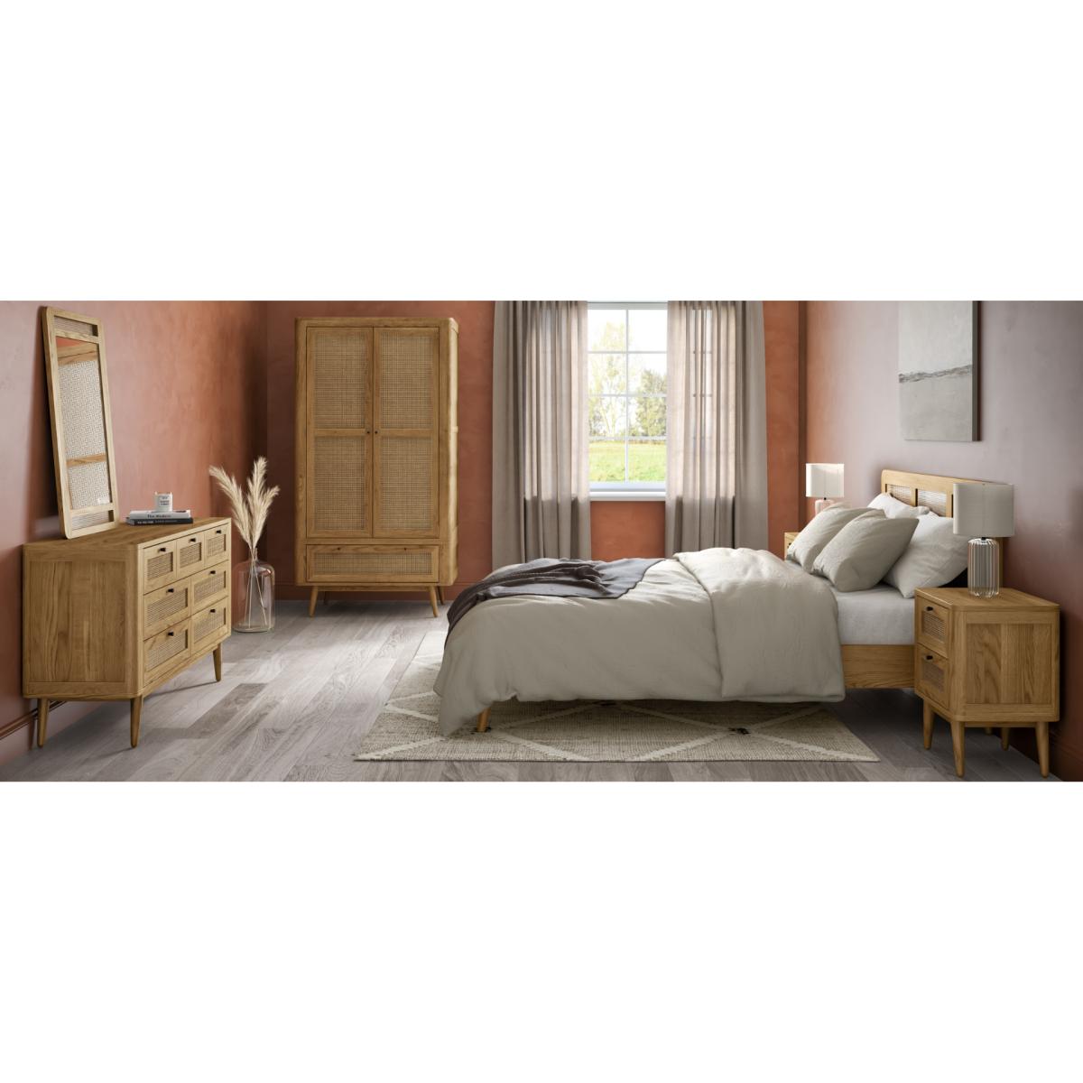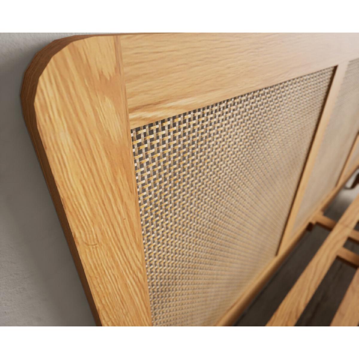 The Oak Rattan Super King Size Bed is crafted from 100% solid oak with a rustic finish, with stunning rattan on the headboard and footboard.