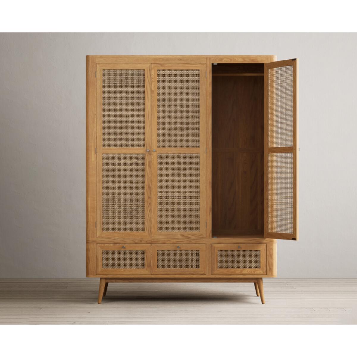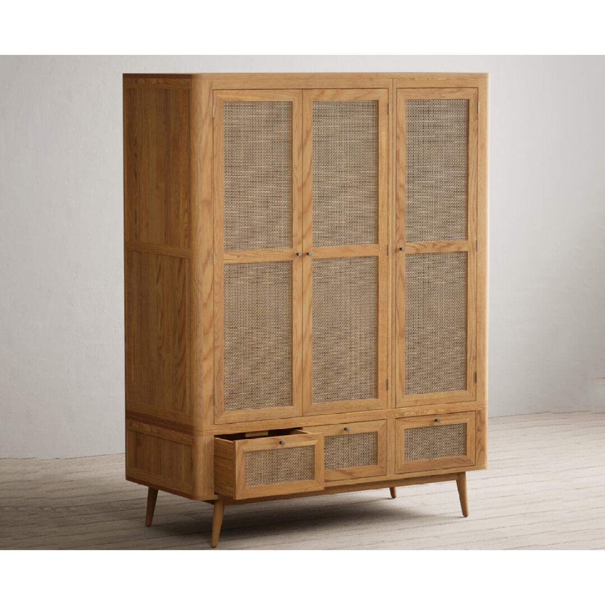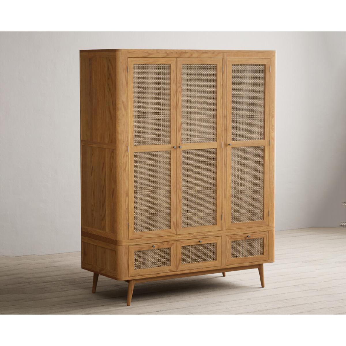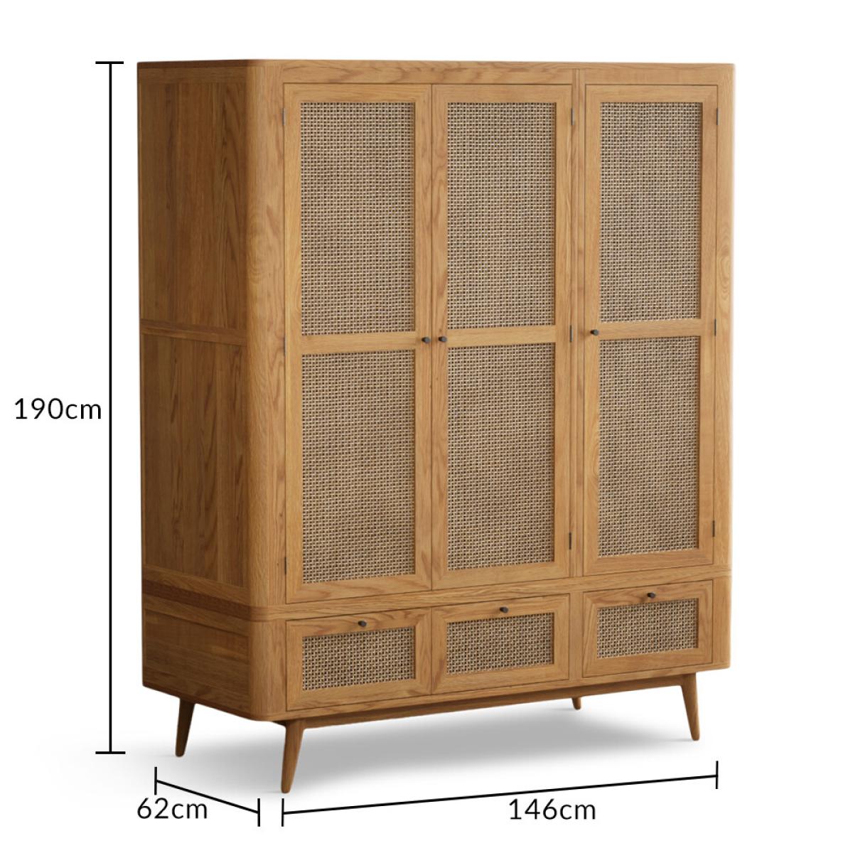 Oak Rattan Triple Wardrobe