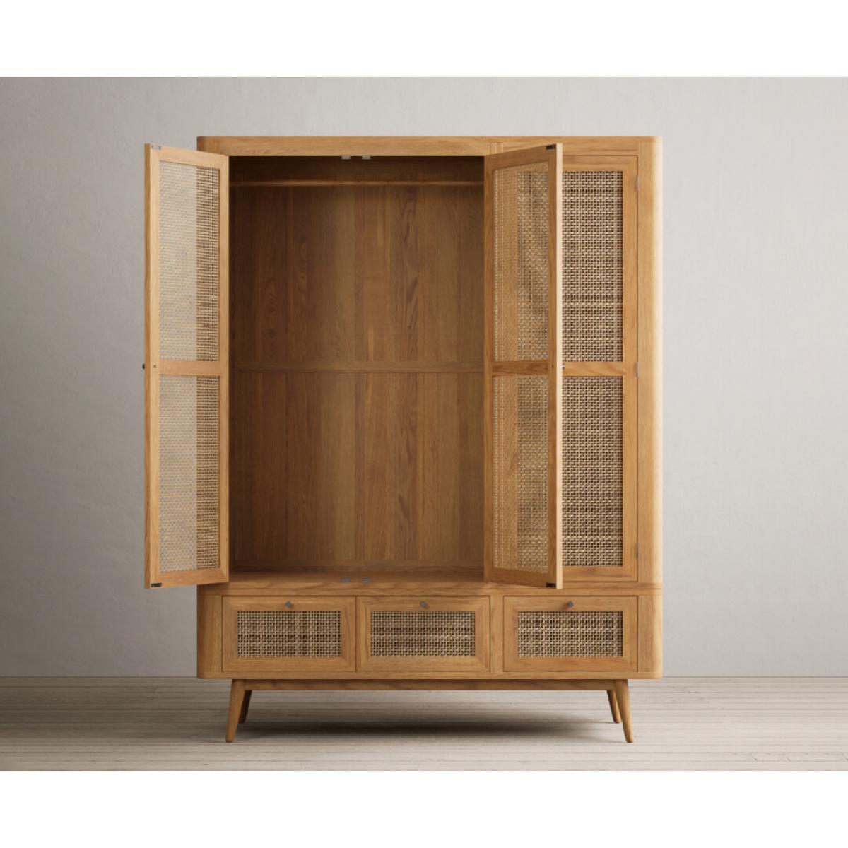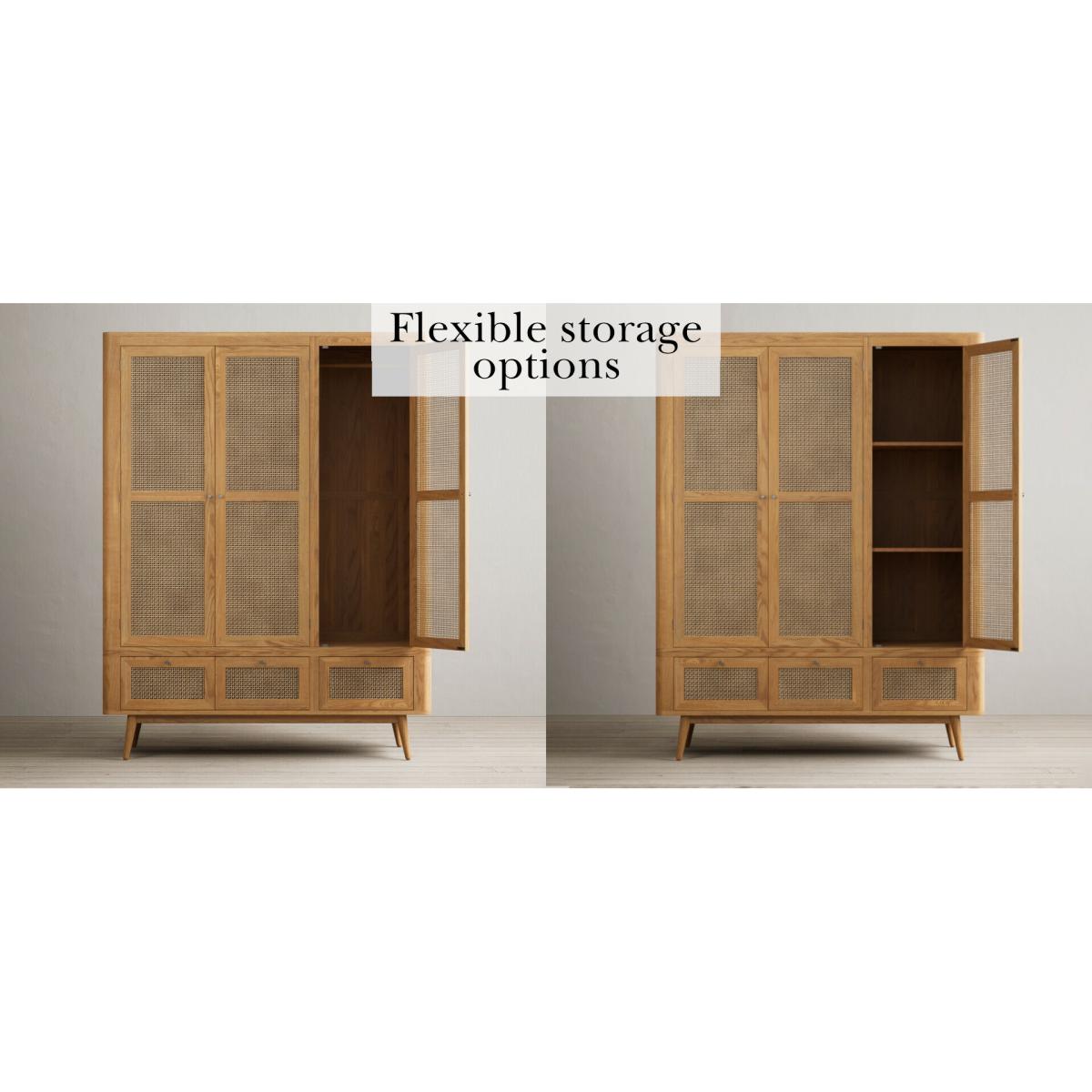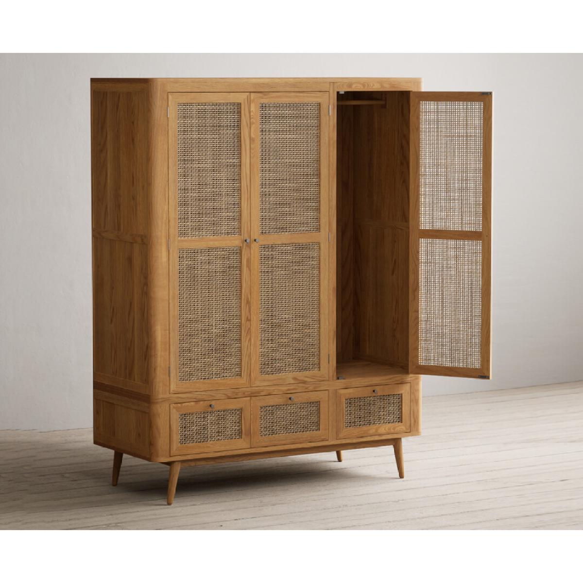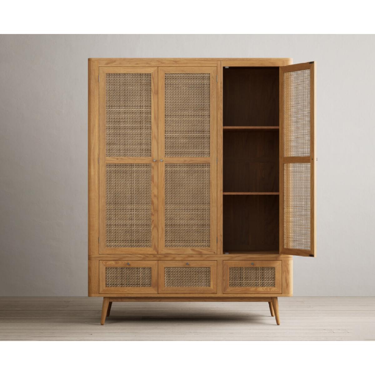 Oak Rattan Triple Wardrobe