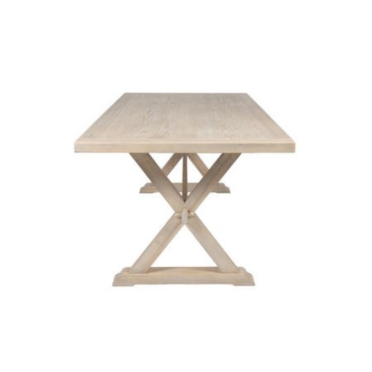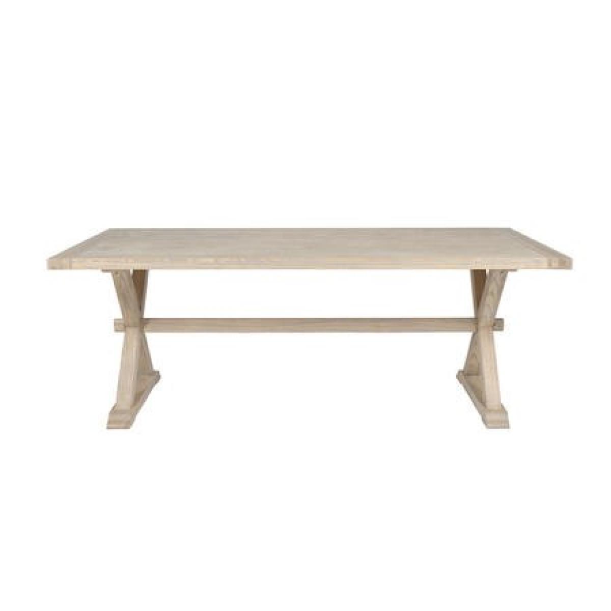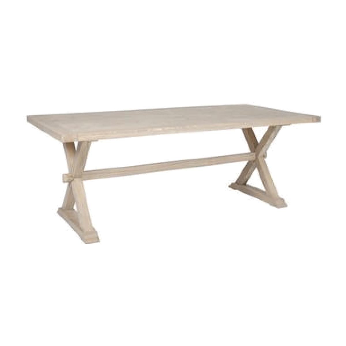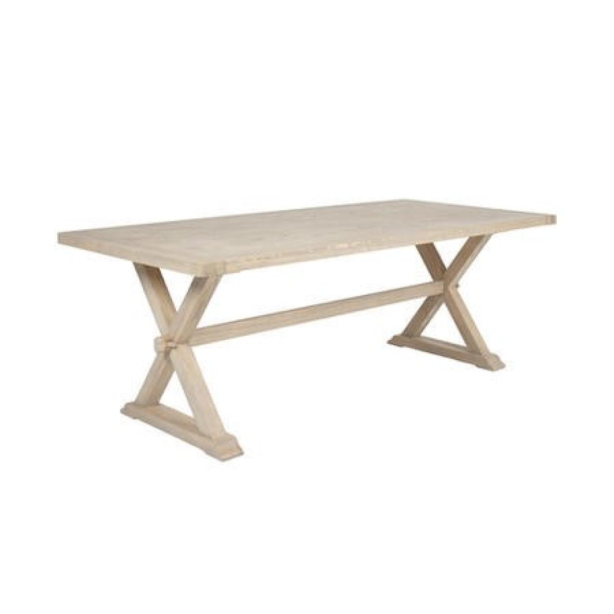 Dimensions W210 x H77 x D100 cm. The Valent dining table is made from solid oak and oak veneers ensuring it will last the test of time. The stunning cross leg base gives the table a rustic feel. Features. Made from solid oak and oak veneer. Rectangular dining table. Perfect for hosting dinner parties. Sturdy and durable design. Stunning cross legged base Assembly required..