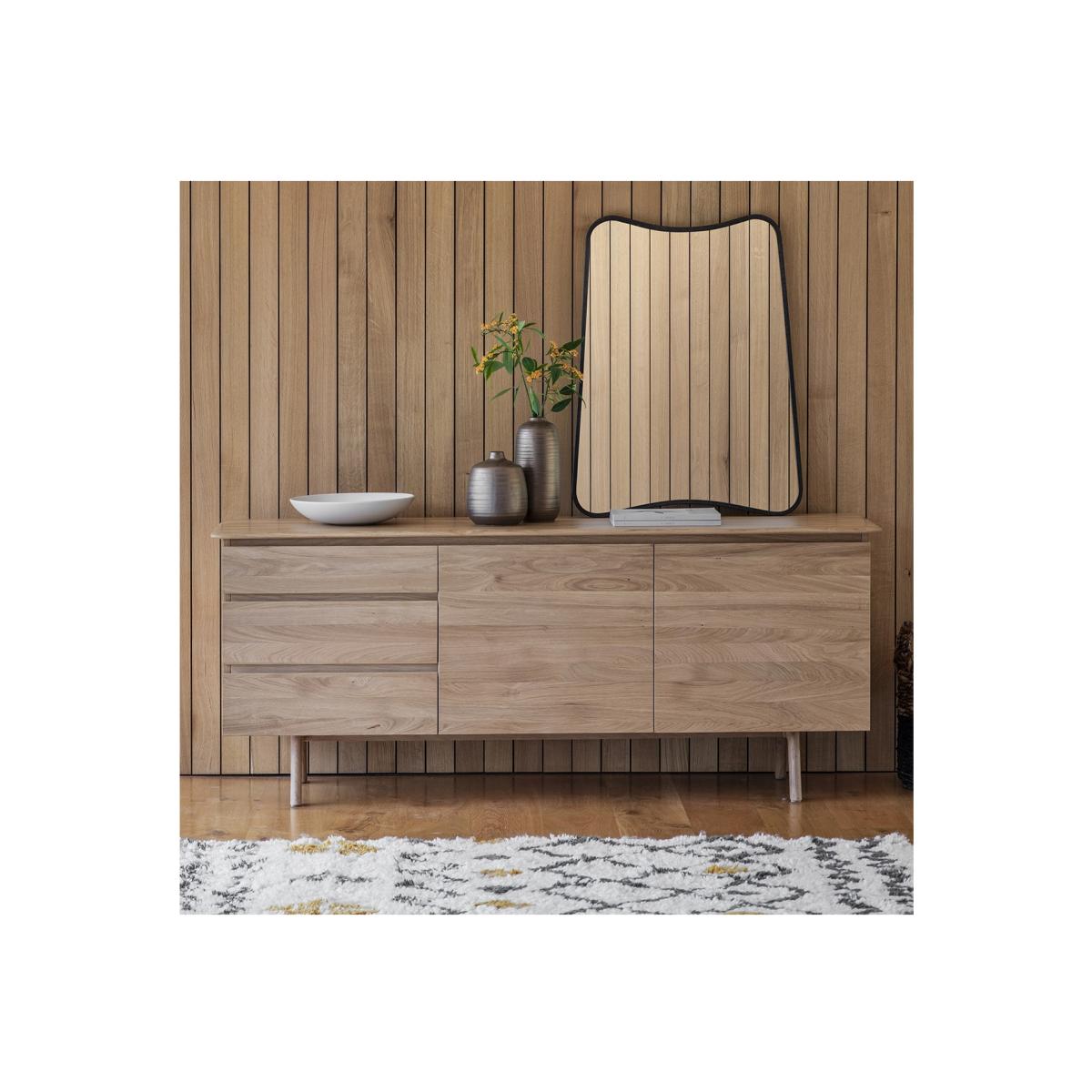 I love this sideboard for its sleek, modern aesthetic combined with the natural warmth of the oak finish. It works particularly well in contemporary or Scandi-inspired interiors, where clean lines and understated elegance are key. Practical styling tips include pairing it with minimal decor-think monochrome vases or subtle artwork-to keep the look fresh and uncluttered. It also makes a versatile storage piece in dining rooms or living areas, providing ample space for essentials while maintaining a stylish focal point. For added texture, introduce textiles or soft furnishings nearby, ensuring the overall space feels cosy yet sophisticated.