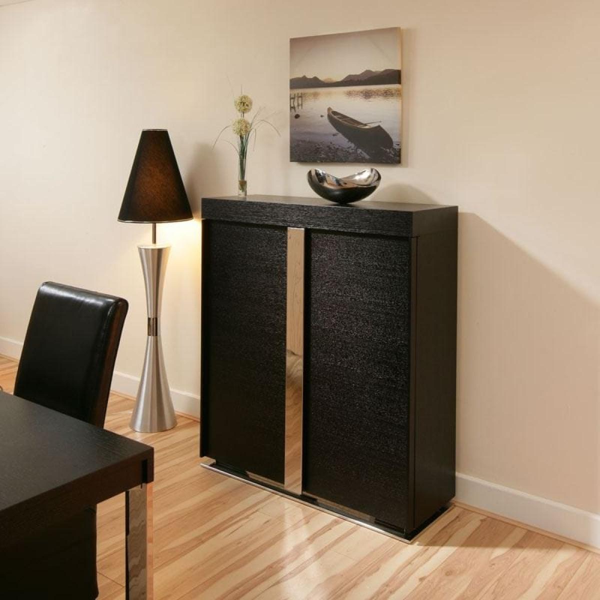 Quatropi's 912. H Oak Sideboard / Cabinet / Buffet in dark oak. Ideal for a Drinks Cabinet Or Storage Unit in Any Dining or Living Room. Features include soft closing doors and stainless steel base and trim. Wonderful build quality. W110cm D39cm H124cm Modern Design Premium Quality Furniture