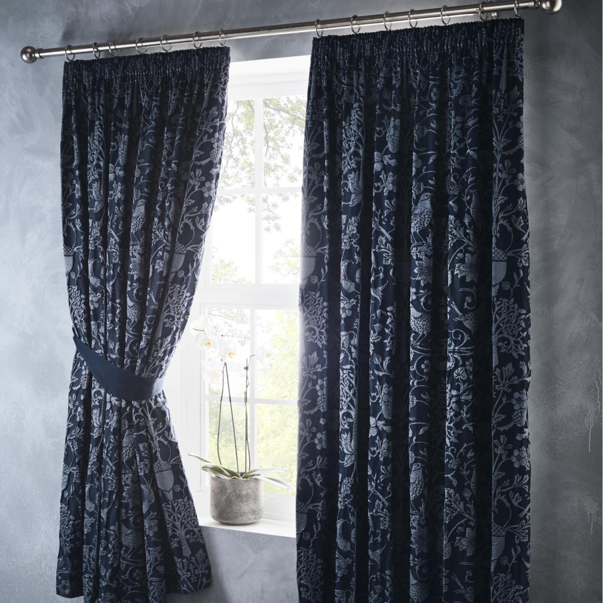 Influenced by the traditional 19th-century arts crafts style, Oak tree jacquard captures the values of these artists, hand-drawn natural elements, simple woodblock shapes all produced in a high quality woven relief jacquard. Accessories, pencil pleat curtains, quilted throw over and boudoir cushion complete the sumptuous look. Available in a deep midnight blue, plum and elegant silver.