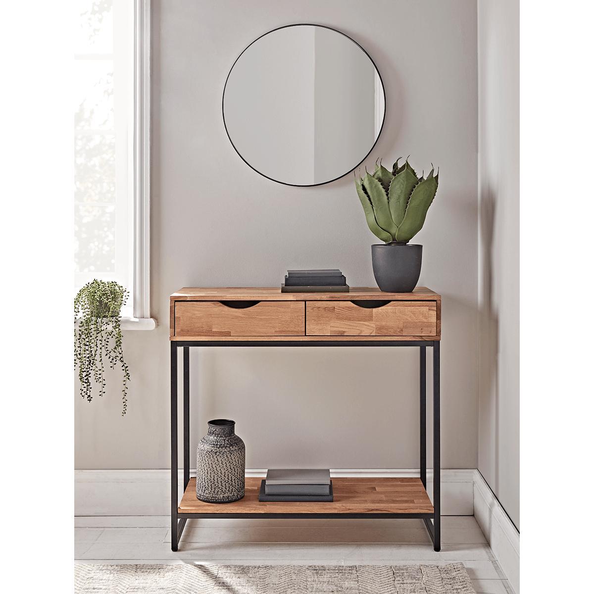 I really like the oak two drawer console table for its simple yet versatile design. It works well in a variety of interiors, from modern minimal to rustic and Scandinavian styles, thanks to its natural wood finish and clean lines. It’s a great piece for entryways or living rooms, offering practical storage with its drawers while providing a surface for decorative items or essentials. To style it effectively, consider adding some greenery, like a small plant or vase, and layering with a few books or decorative objects on the lower shelf. Its understated look makes it easy to update with different accessories to keep the space fresh and functional.