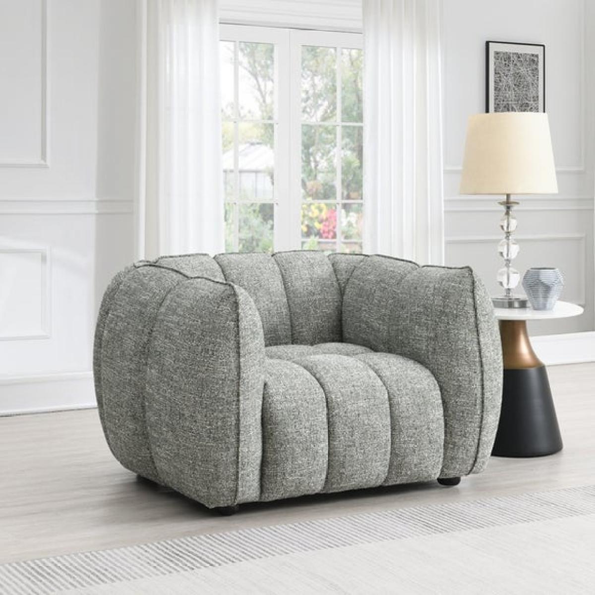 I love this piece because of its cosy, inviting vibe and plush chenille fabric, which adds texture without overwhelming a space. It works particularly well in a variety of interiors, from contemporary to more rustic or eclectic schemes, thanks to its neutral grey tone. To style it effectively, consider pairing it with soft throws and cushions in contrasting textures or colours to create a layered look. It’s perfect as an accent in a lounge or reading nook, and its rounded silhouette can soften sharper furniture lines, making the space feel more welcoming and relaxed. Practical tip: it’s a great choice for smaller spaces or as a focal piece, bringing charm and comfort without taking up too much room.