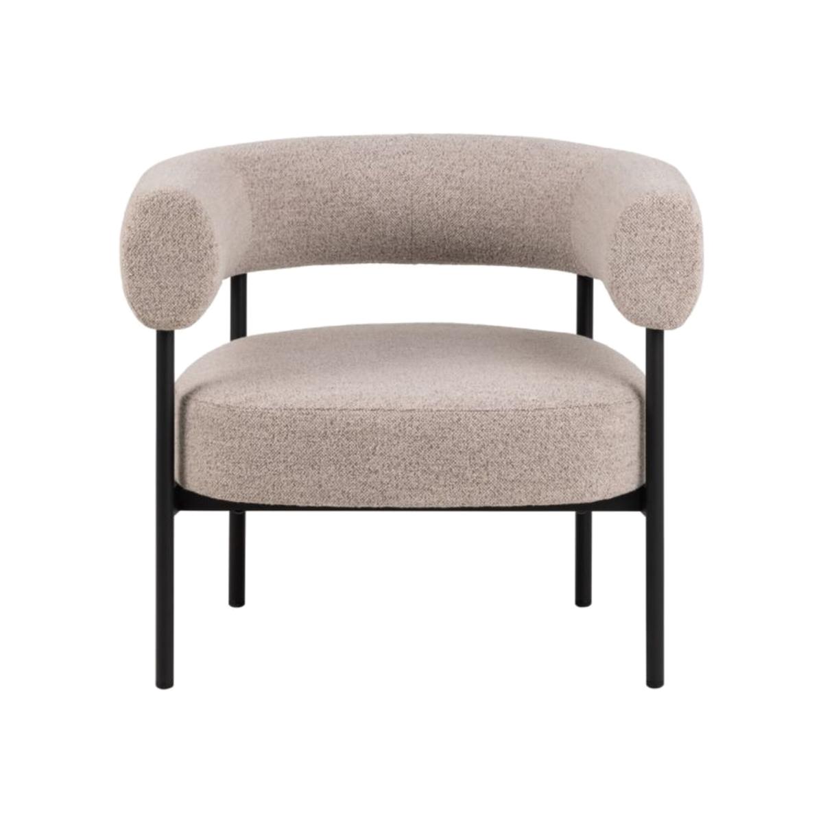 This lounge chair is a harmonious blend of comfort and style. Upholstered in beige fabric and supported by a base of matt black rough powder-coated steel, it offers both elegance and durability. With pocket springs for added comfort, this chair is perfect for relaxation and lounging.