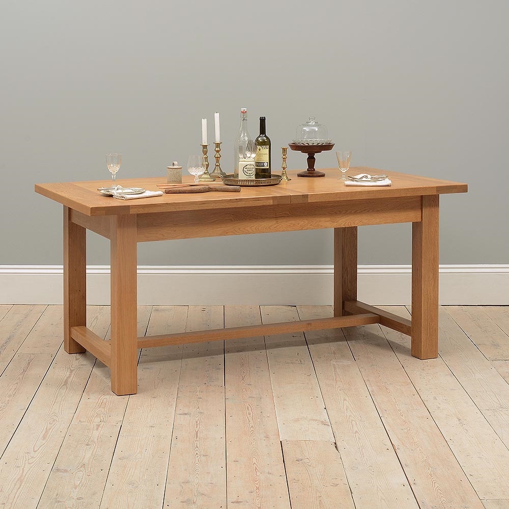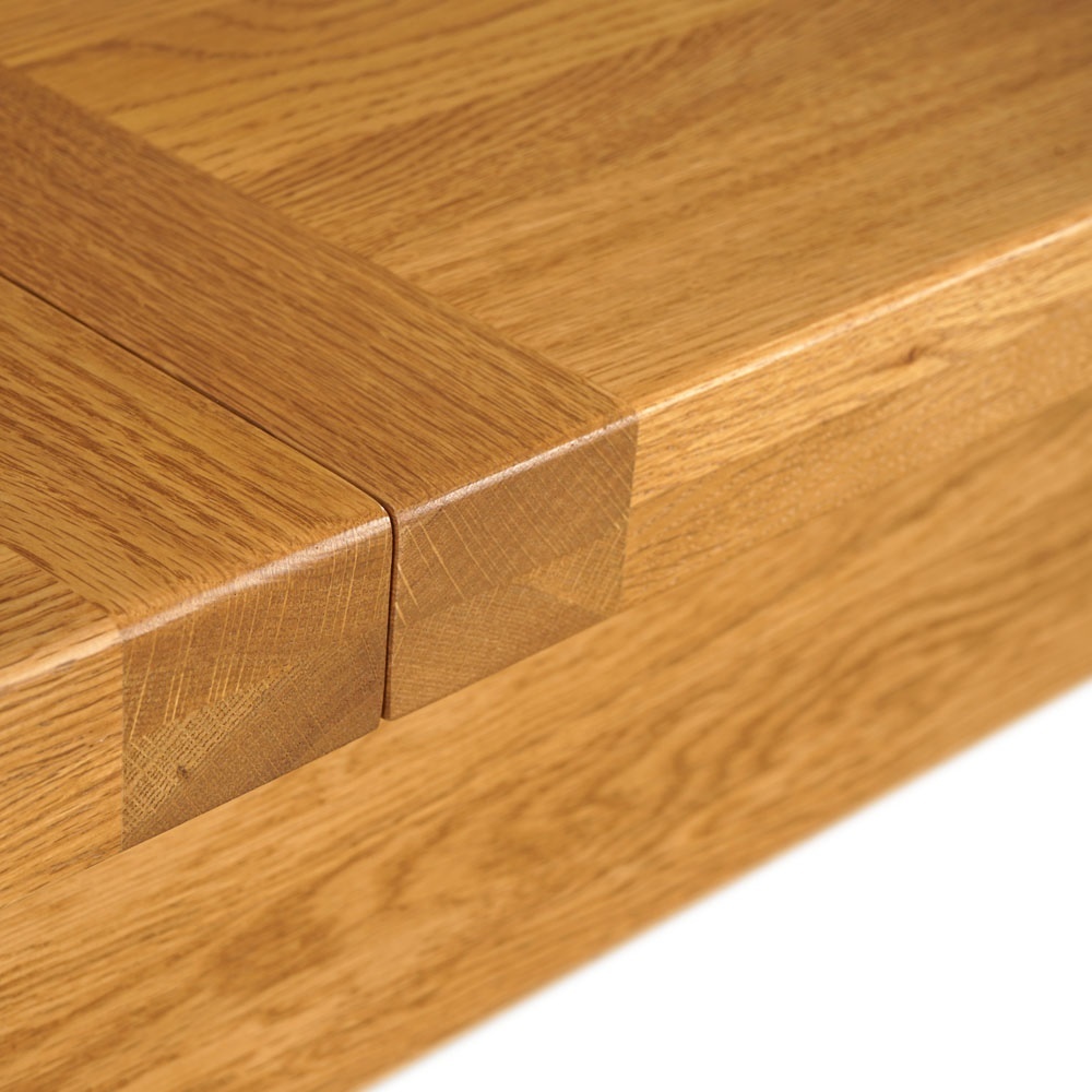 Our dining tables are more often than not the hub of family activity and you need to make sure yours is up to all the eating, drinking, crafting and homework that will put it through its paces every day. We're confident that this one will more than fit the bill. It's beautiful, being made from solid oak and high quality veneers and hand-waxed to bring out the rich grain. It's resilient as it's sealed with a durable lacquer that resists spills and stains. And it's versatile too, as it extends from an already generous 180cm to an impressive 260cm, big enough to accommodate a few guests for dinner or lay out an impressive buffet for a crowd.