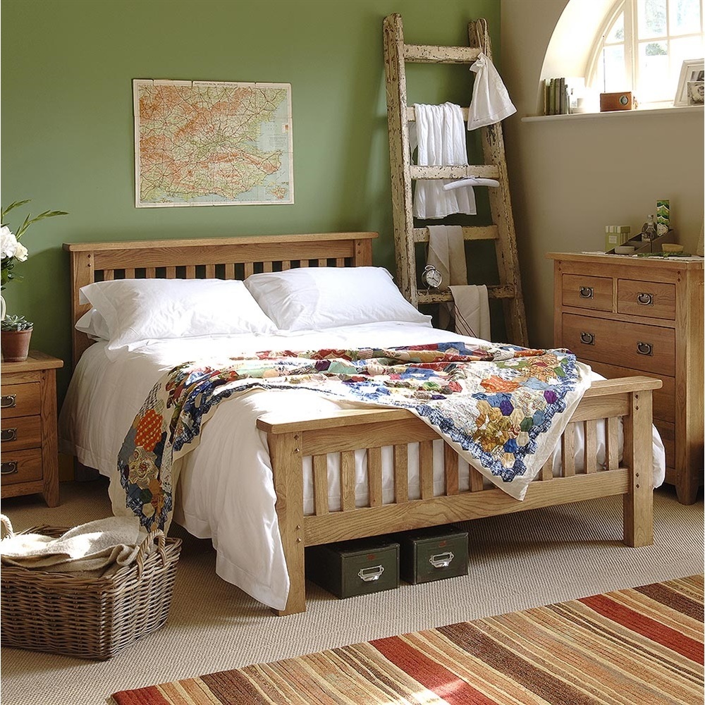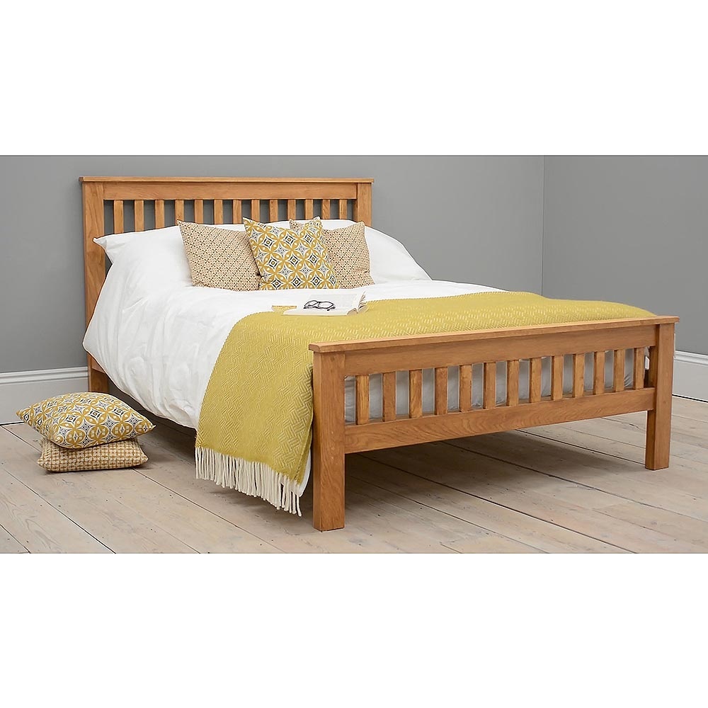 You might not be able to resist slipping off for an afternoon nap in this stunning bed. With clean, contemporary lines, the Oakland King Size Bed will cut a stylish dash in your master bedroom. Constructed from solid oak and oak veneers it will make a striking centrepiece. Slatted head and footboards add a touch of the rustic, and the hand-waxed finish combined with a layer of protective lacquer ensures it will still look good in years to come.;This range was formerly known as Evesham Oak.