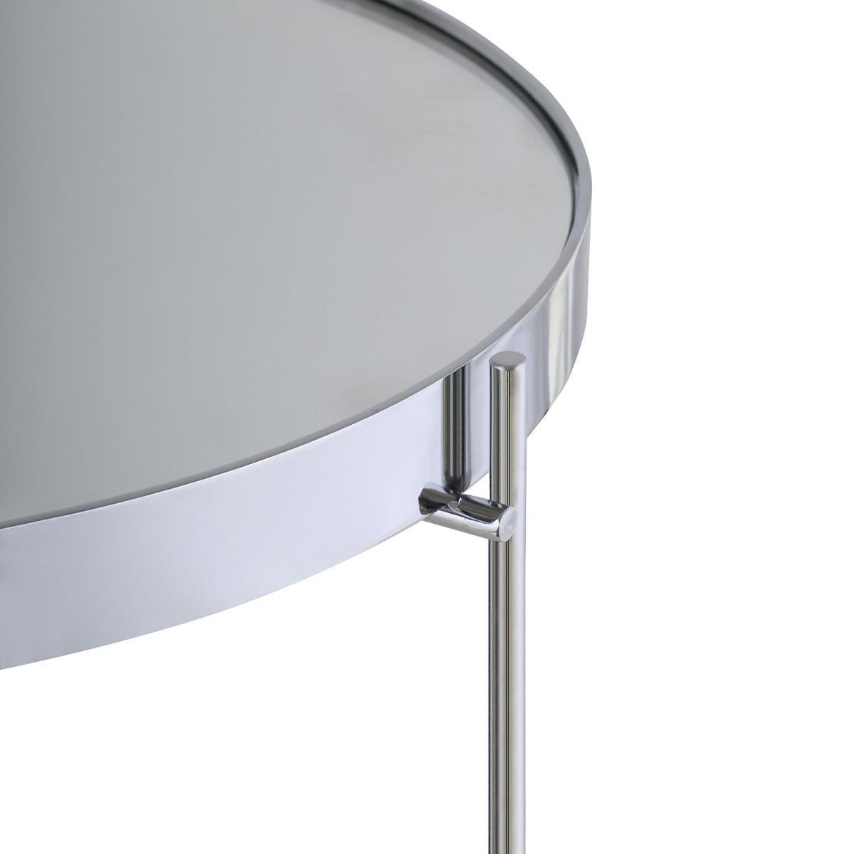 I love this chrome lamp table for its sleek, minimal look that can effortlessly enhance both modern and eclectic interiors. The round shape and reflective surface make it a versatile piece that adds a touch of contemporary elegance without overpowering a space. It works particularly well in living rooms or bedrooms where it can be styled with a statement lamp, some coffee table books, or decorative accessories. For styling tips, consider pairing it with soft textiles like velvet cushions or textured throws to soften its metallic edge, or use it alongside other chrome or glass pieces to create a cohesive, polished look. Its practical size also makes it a functional side table that won't crowd the space, ideal for small or compact rooms where every piece needs to earn its keep.