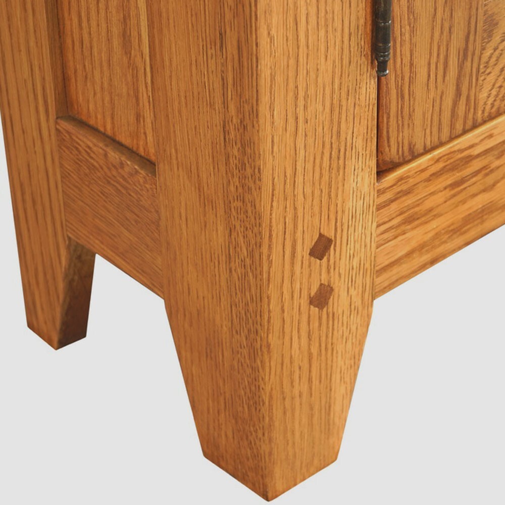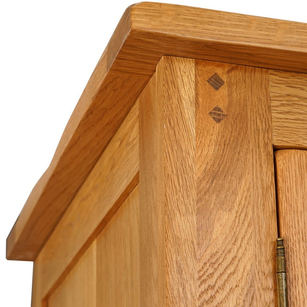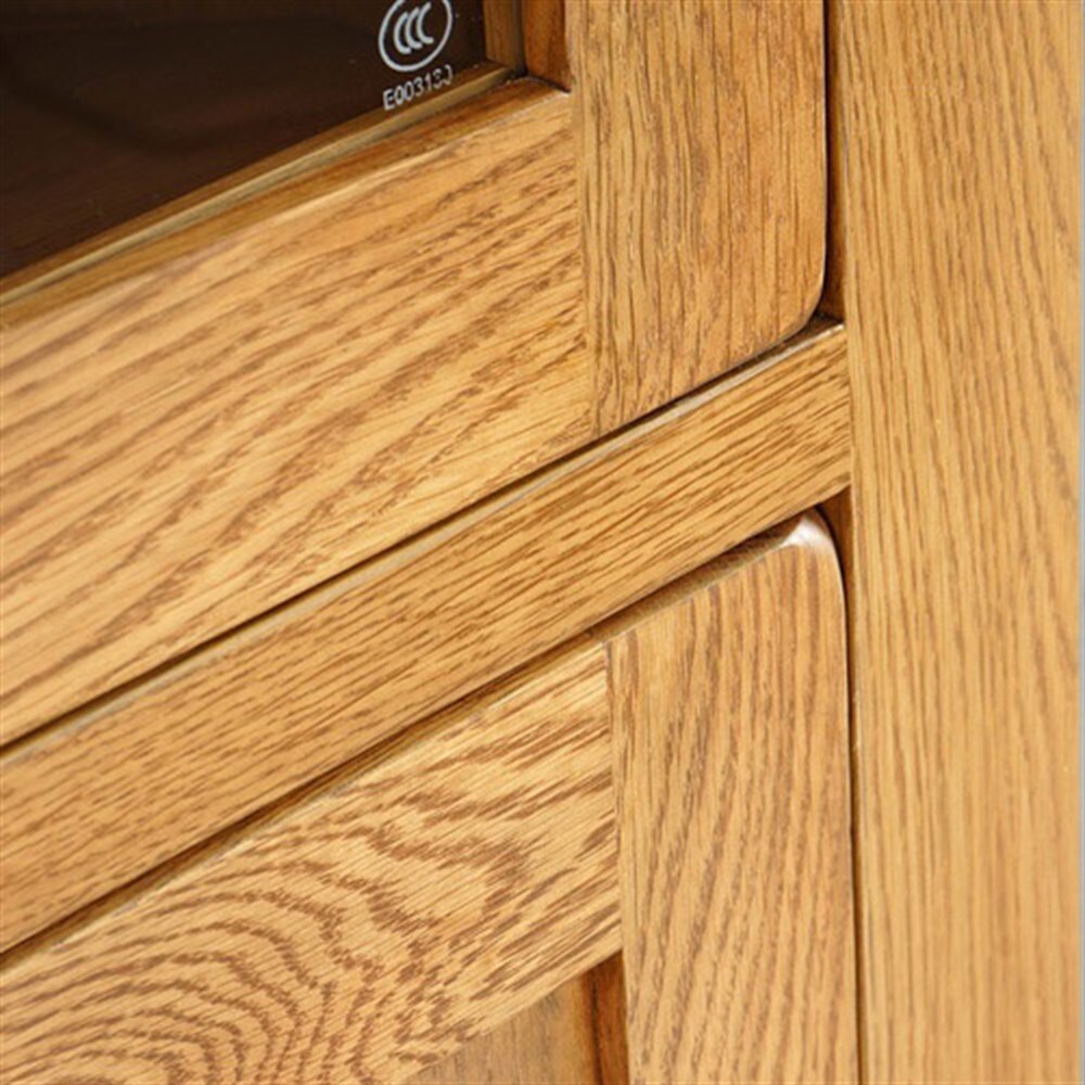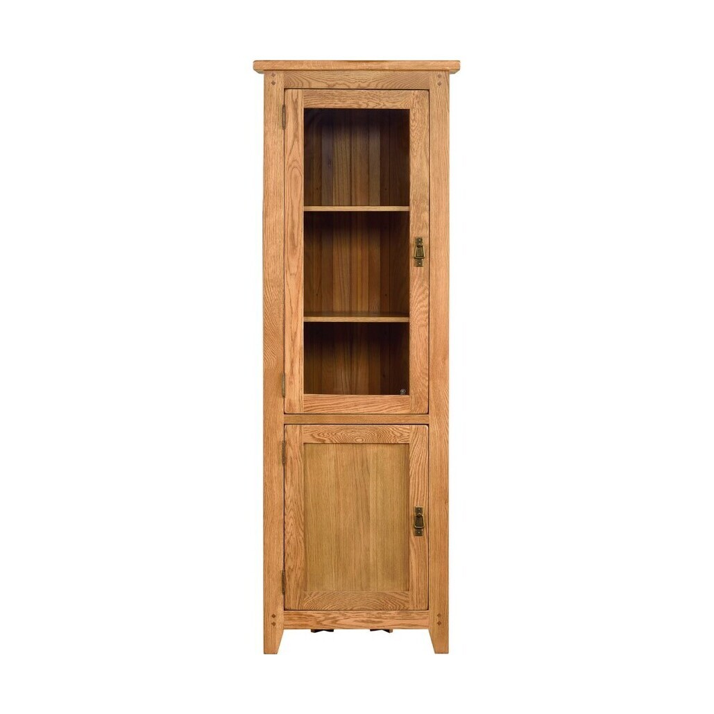 Fitting neatly into a corner to maximise space, this handsome devil is just the thing for displaying your best crystal glasses or other treasures. Made from solid oak and high quality oak veneers, it also has a roomy cupboard at the bottom for stowing away stuff you don't want to be seen. With vintage-style handles on the doors and a lacquer finish that highlights its warm rustic character, this splendid cabinet is timeless enough to work in any décor.