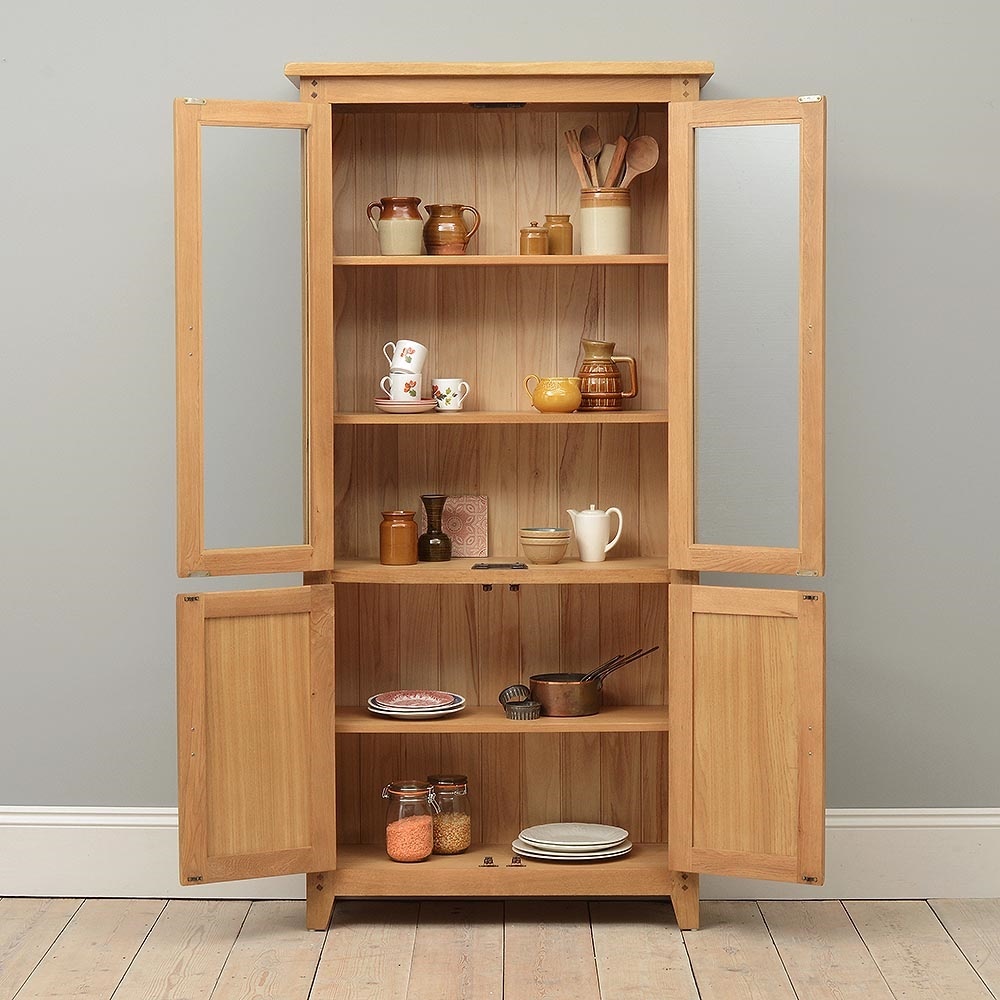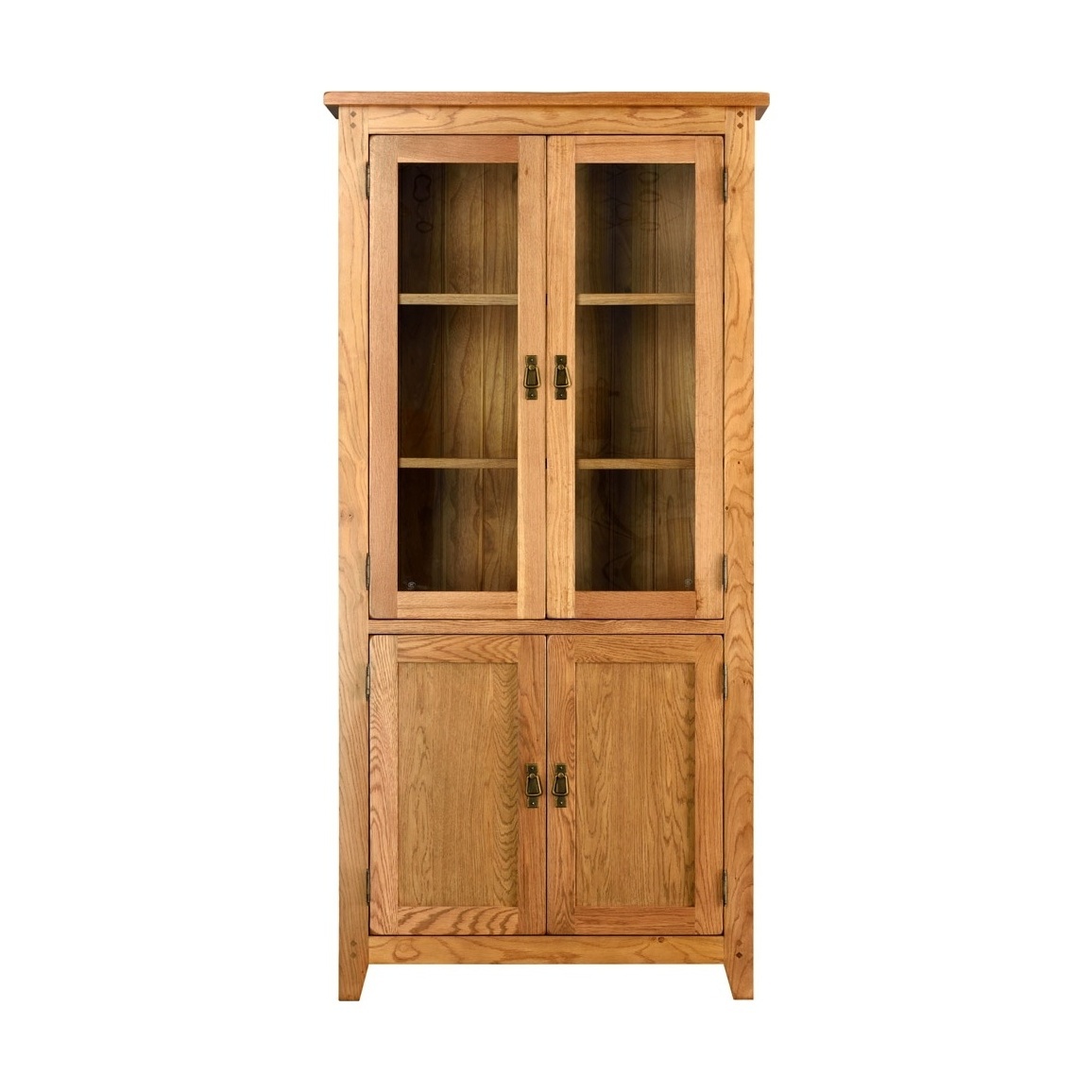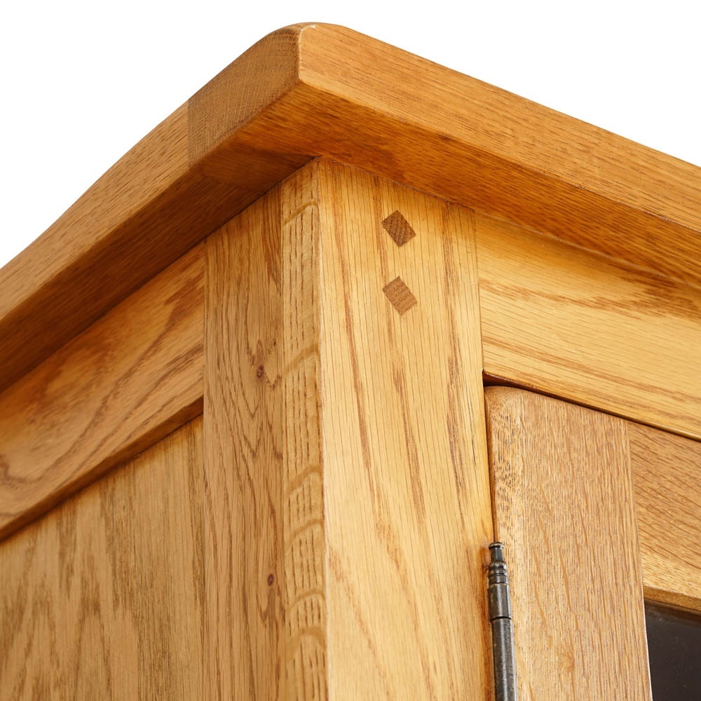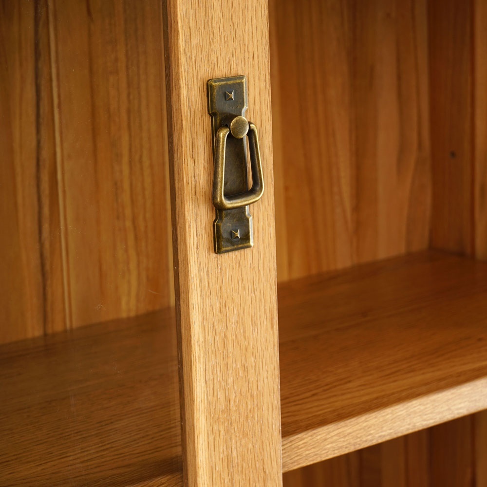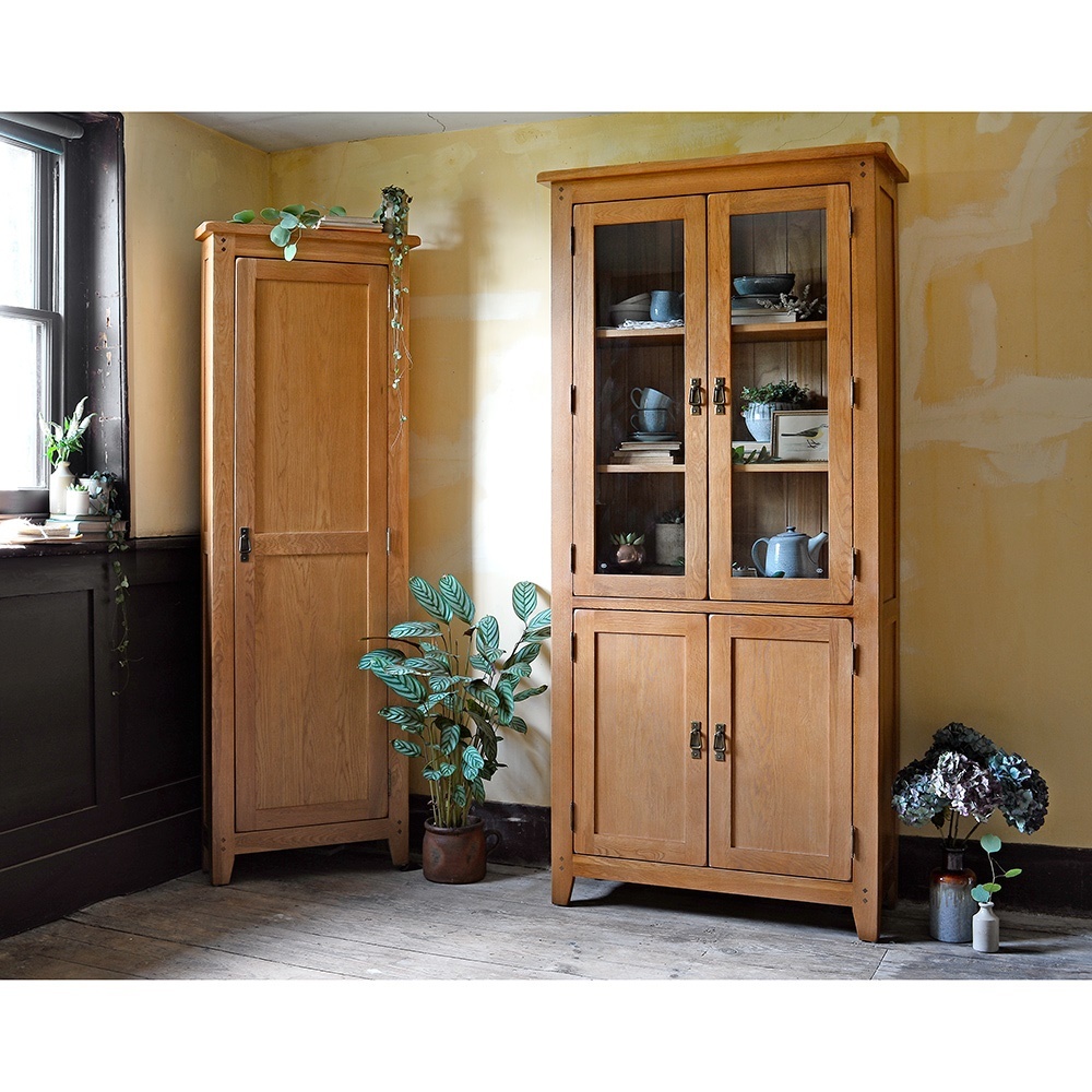 We can see this marvellous cabinet in just about any backdrop, its timeless rustic charm and simple yet elegant design will work in both contemporary and traditional rooms. Beautifully crafted from oak and oak veneers, on the top half behind the glazed double doors you'll find sturdy shelves ready to be filled with your treasures or maybe some first editions. And below, a double cupboard with shelf to keep those things you don't want out on display neat and tidy. Richly grained and protected with a clear lacquer, it's very worthy of being on display itself.
