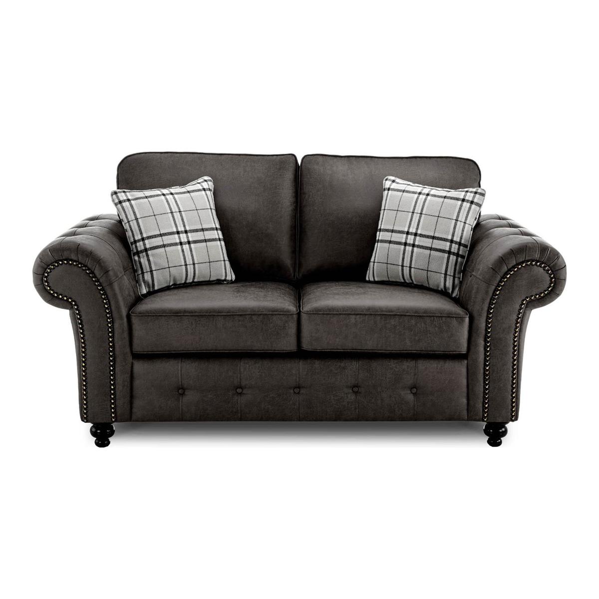 The Oakland Faux Leather 2 Seater Sofa gives an elegant and luxurious feel to any living space. This beautifully soft to feel sofa, features a stylish brass stud and button detailing along with sturdy wooden feet.\n\nPlease note, unfortunately we cannot deliver this item to the Channel Islands.\n\n[Click here](https://www.dunelm.com/infodocs/downloads/Furniture-Sizing-Guide.pdf) to check out our handy sizing guide to help you find out if you’ll be able to get your new furniture into your home.