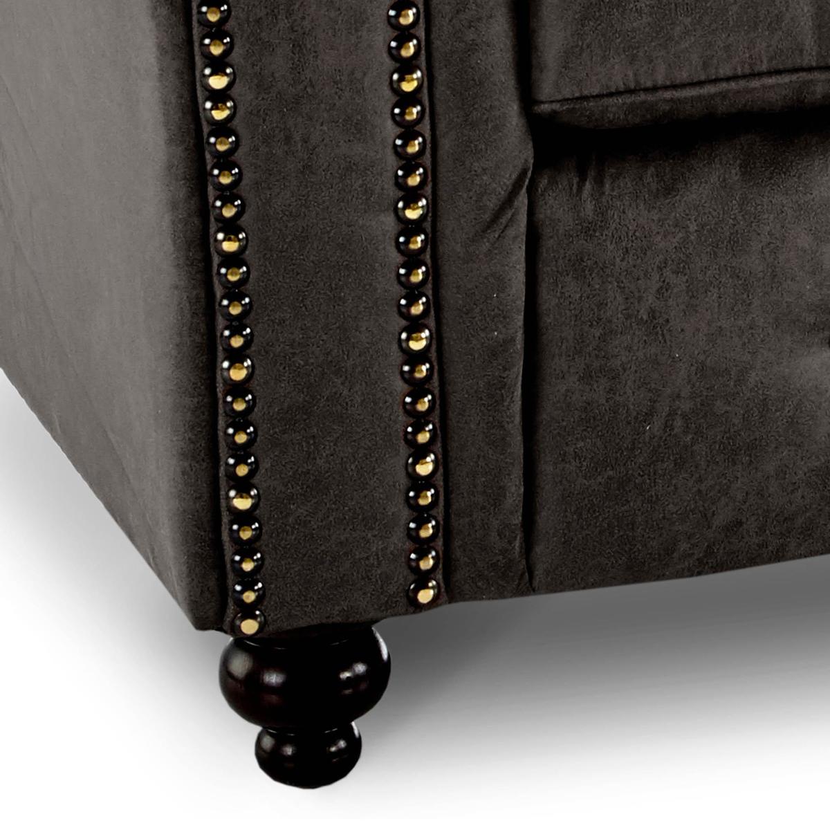 The Oakland Faux Leather Armchair gives an elegant and luxurious feel to any living space. This beautifully soft to feel armchair, features a stylish brass stud and button detailing along with sturdy wooden feet.\nPlease note, unfortunately we cannot deliver this item to the Channel Islands.\n\n[Click here](https://www.dunelm.com/infodocs/downloads/Furniture-Sizing-Guide.pdf) to check out our handy sizing guide to help you find out if you’ll be able to get your new furniture into your home.