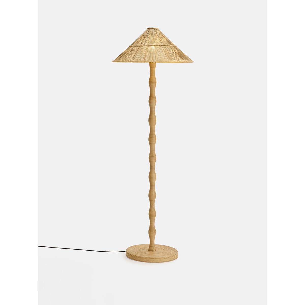 Our dimmable Oakland floor lamp is made from natural rattan with a fully wrapped rattan base, rippled column, and cone-shaped wicker shade. Taking cues from the natural surroundings of Soho Roc House, this beach house-style floor lamp can be paired with the Oakland table lamp to bring a relaxed, coastal charm into your home. • Wicker and rattan floor lamp • Fully wrapped natural rattan • Cone-shaped shade • Dimmable • Inspired by Soho Roc House