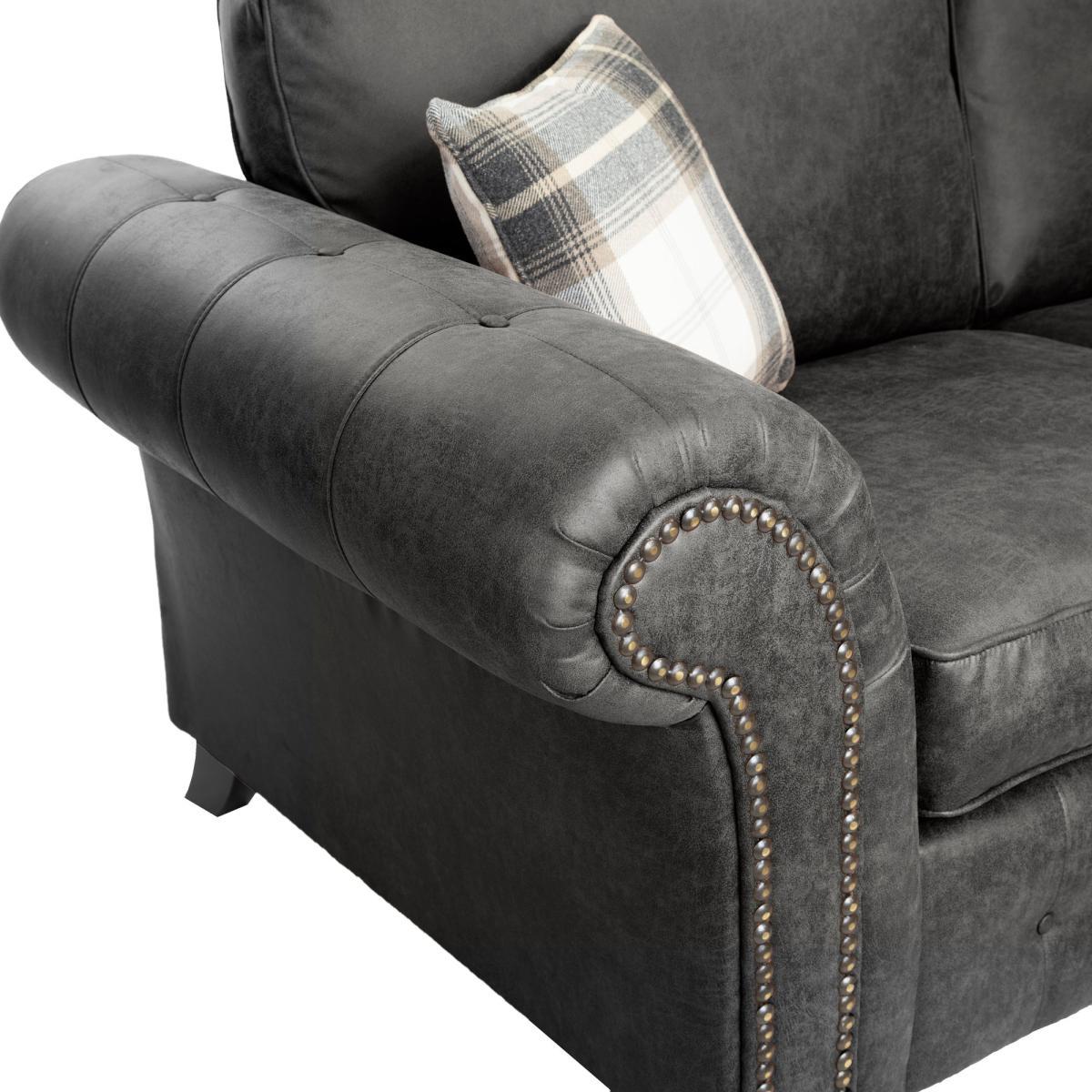 The Oakland Faux Leather Corner Sofa adds an elegant and luxurious touch to any living room. With soft to the touch faux leather upholstery available in two colours, this sofa features brass studding and button detailing along with sturdy wooden feet to add the perfect finishing touch. The Oakland also boasts foam filled seat cushions, fibre filled back cushions and a sprung seat, making it as relaxing and comfortable as it is stylish. Please note, unfortunately we cannot deliver this item to the Channel Islands. To check out our handy sizing guide to help you find out if you’ll be able to get your new furniture into your home.