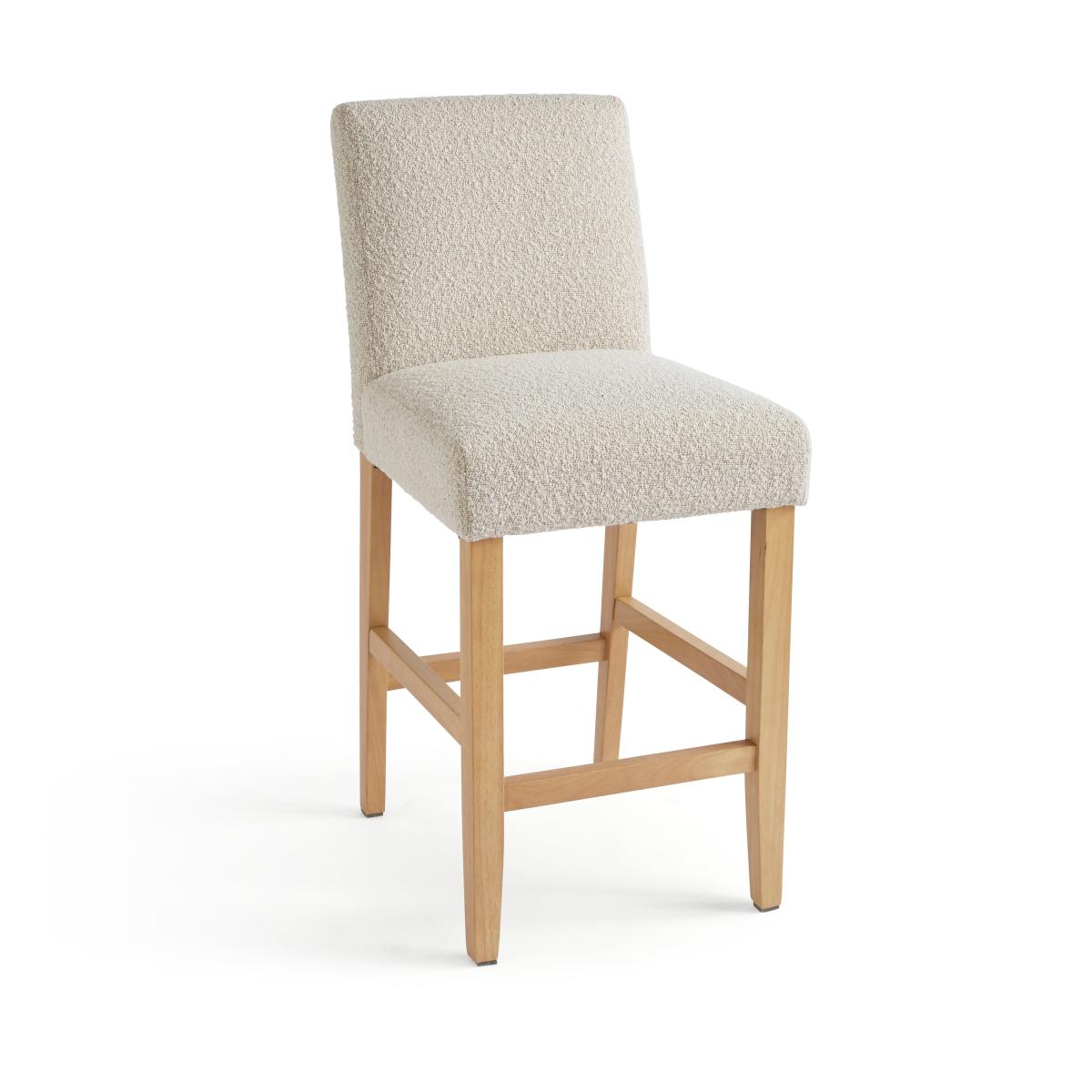 This counter height stool with boucle fabric and natural timber legs is a practical choice for contemporary kitchens and breakfast bars. I love how the boucle adds texture and a cosy feel, making it more inviting and comfortable for casual dining or lounging. It works well in both neutral and Scandinavian-inspired interiors, where natural materials and minimal aesthetics are key. Styling tips include pairing it with light wooden or matte black finishes for a modern look, and adding cushions in contrasting colours to introduce pops of colour or pattern. Its versatile design can easily blend into both everyday family spaces and more refined, minimalist settings.