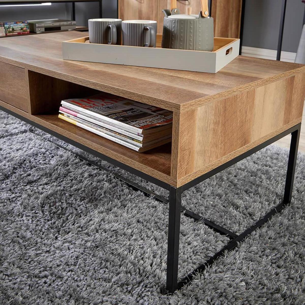 Oakmere 1 Drawer Industrial Coffee Table Storage Unit - NaturalBlack - Oak